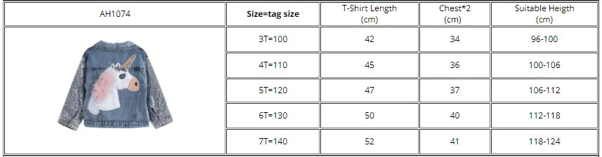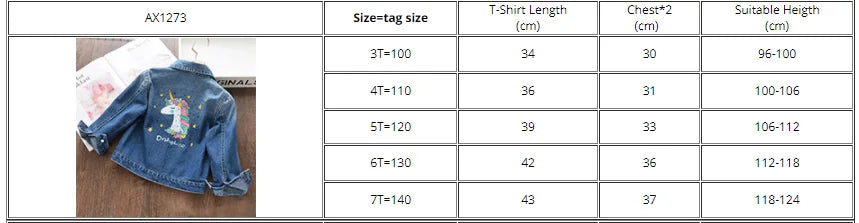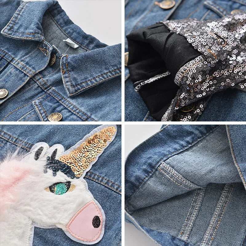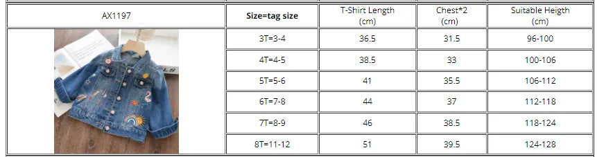 Girls Kids Cartoon Coat Embroidery Denim Jacket for 3-8Y