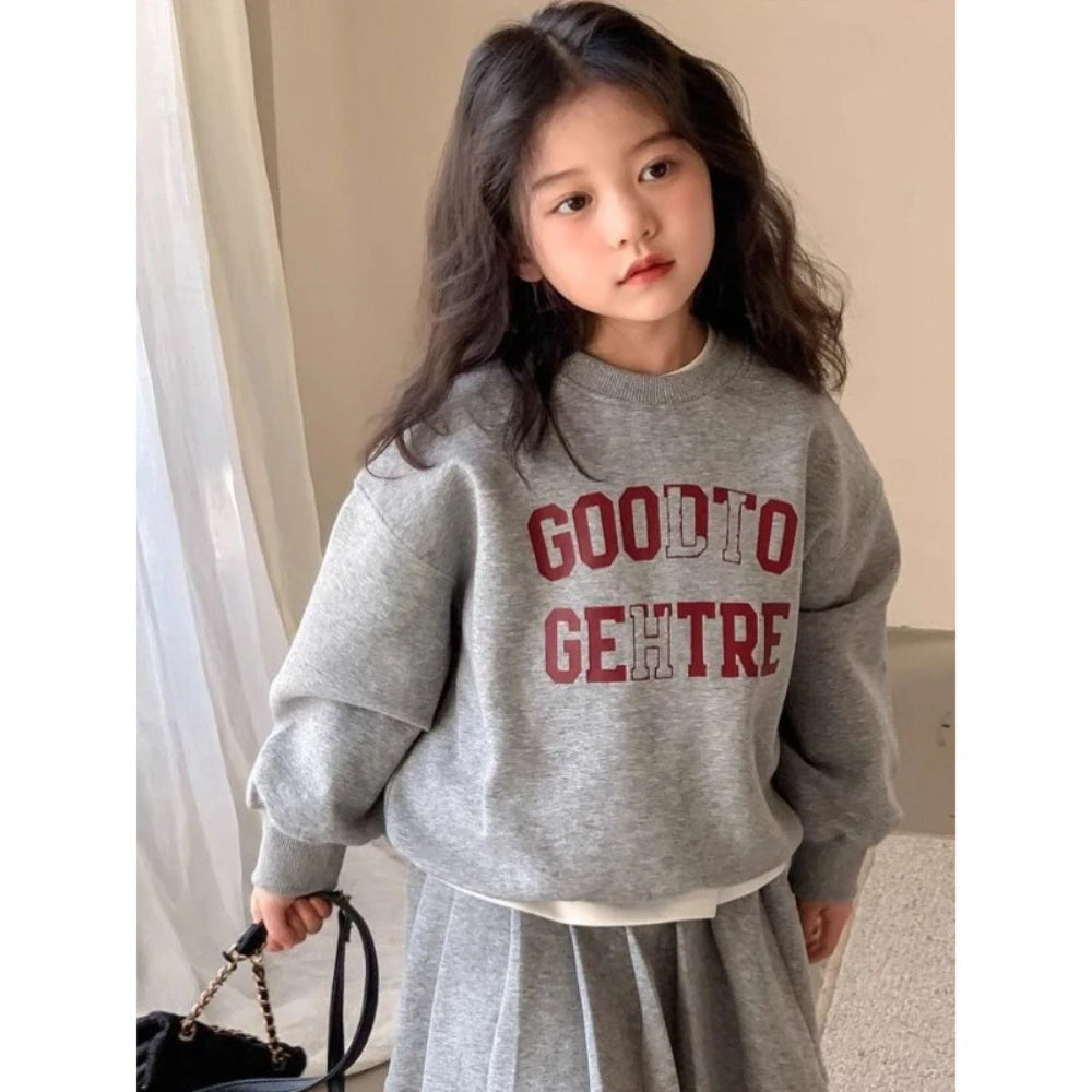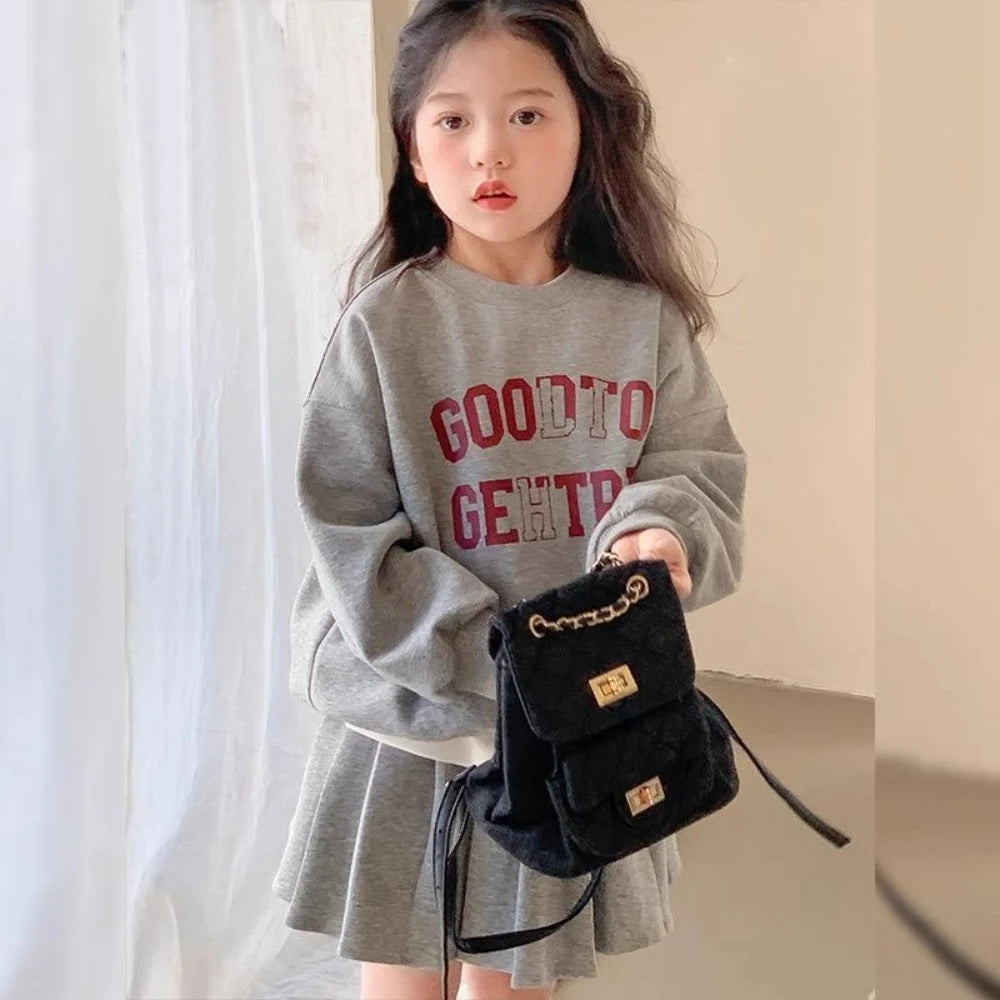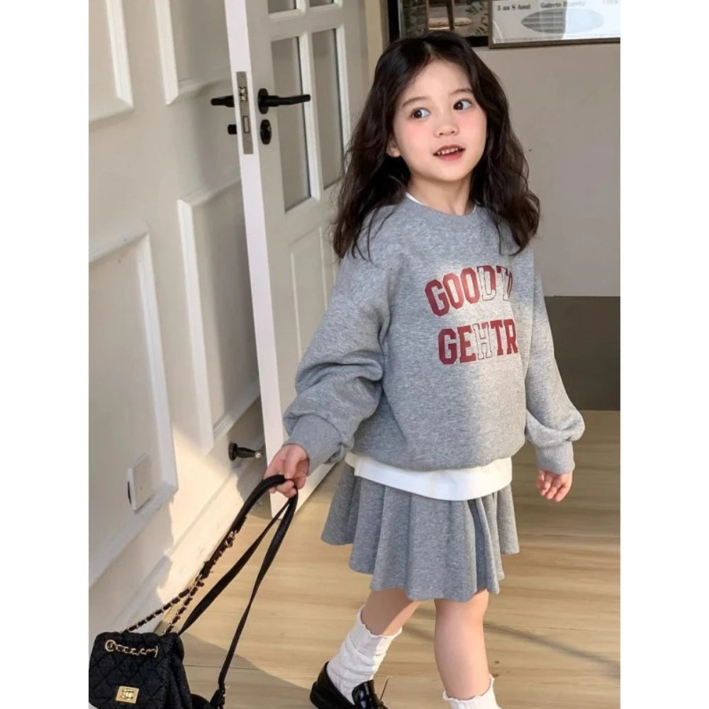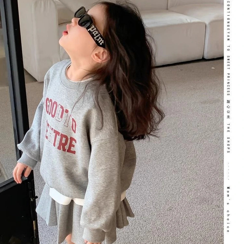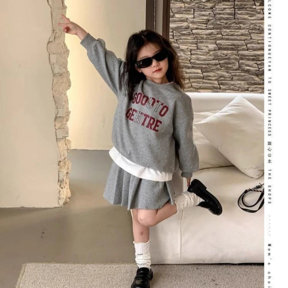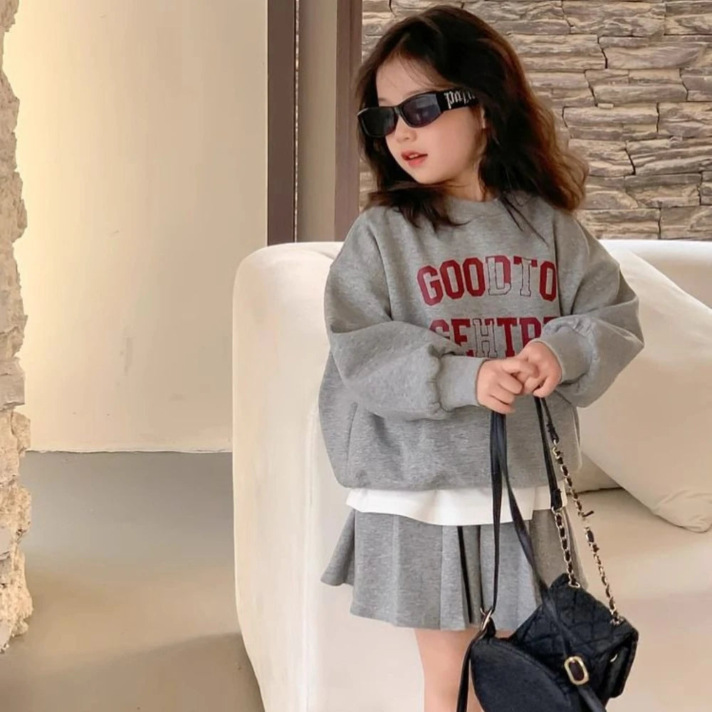 Girl's Printed Letter Hoodie and Pleated Skirt 2PCS Set