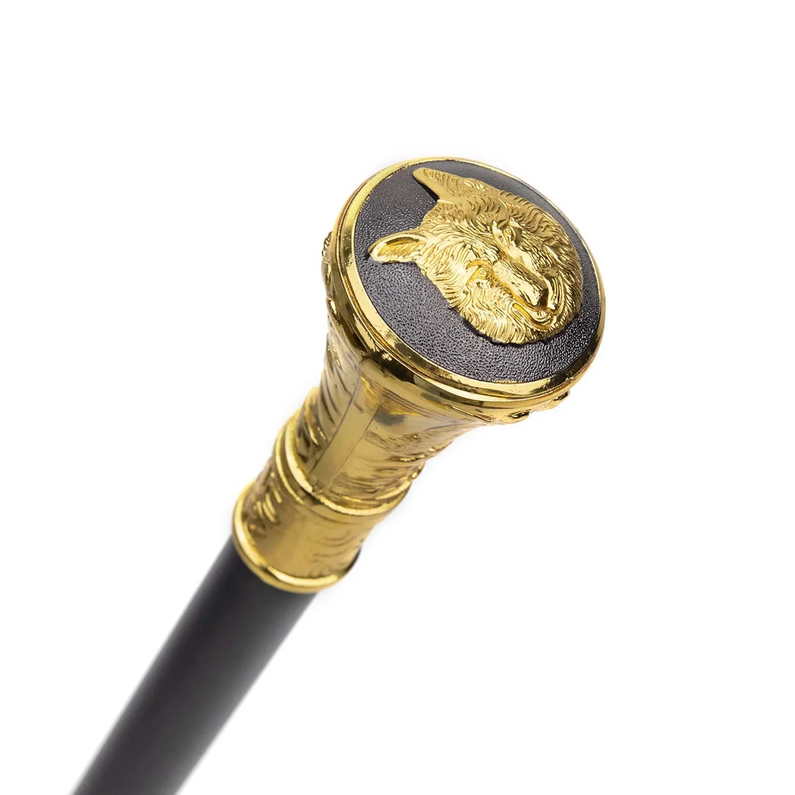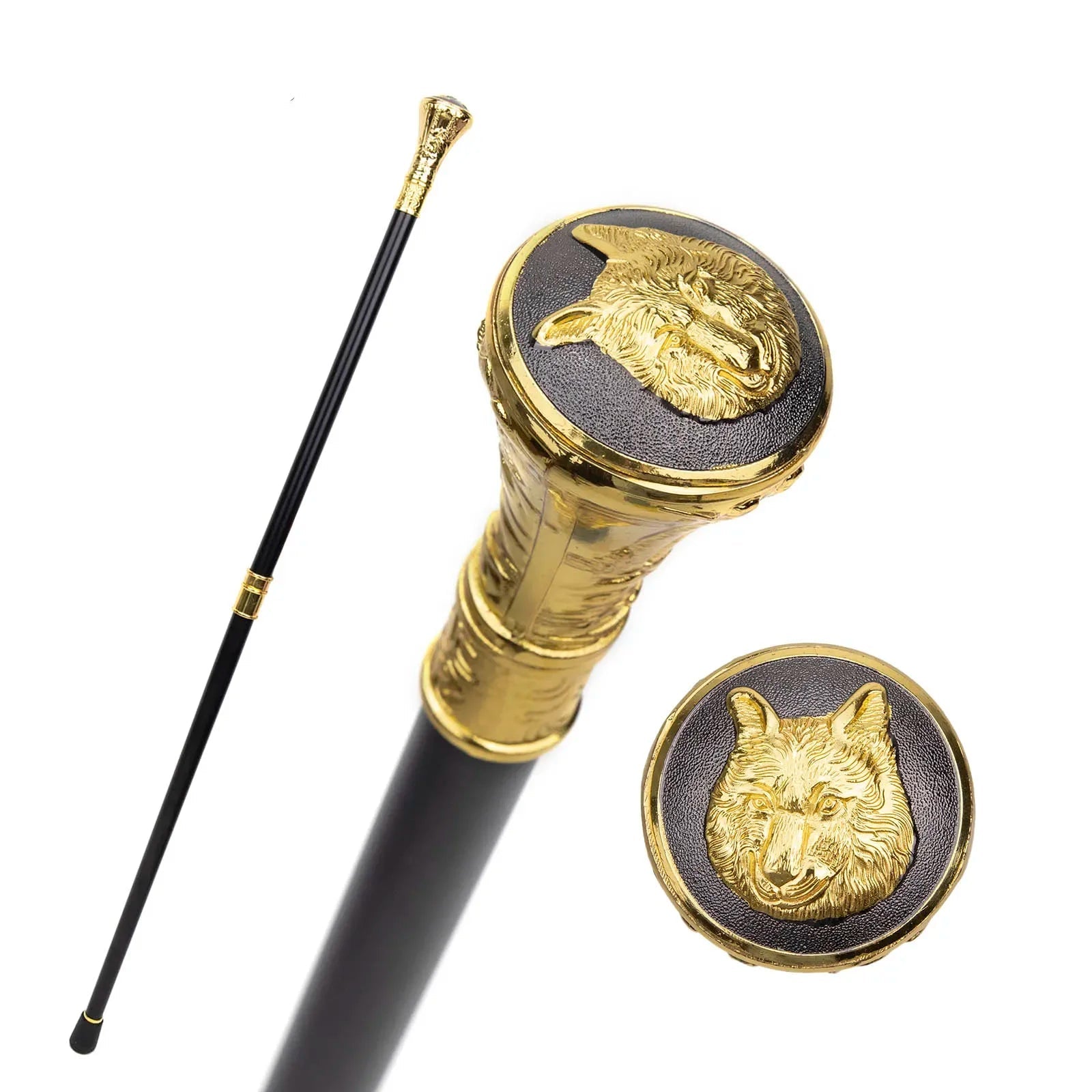 Gold Wolf Head Totem Walking Cane Fashion Decorative Walking Stick Gentleman Elegant Cosplay Knob Crosier 93cm