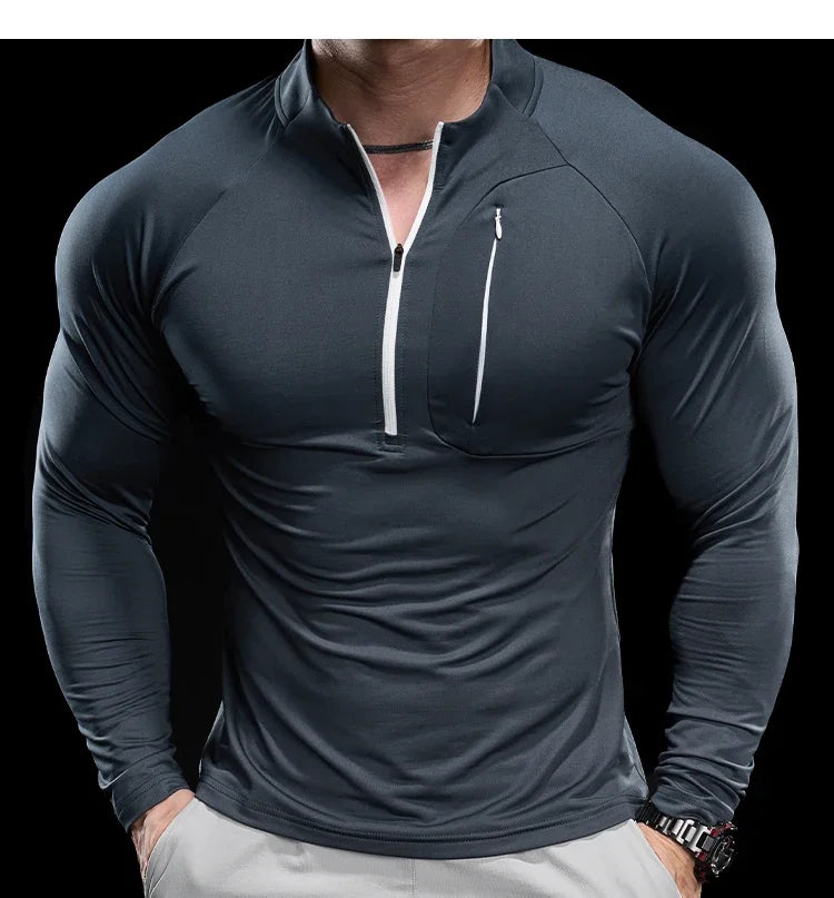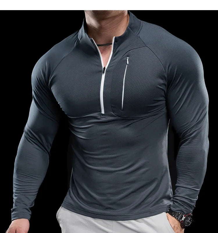 Men's Gym Fitness Quick Dry Running Sport Long Sleeves Trackwear Bodybuilding Training Top