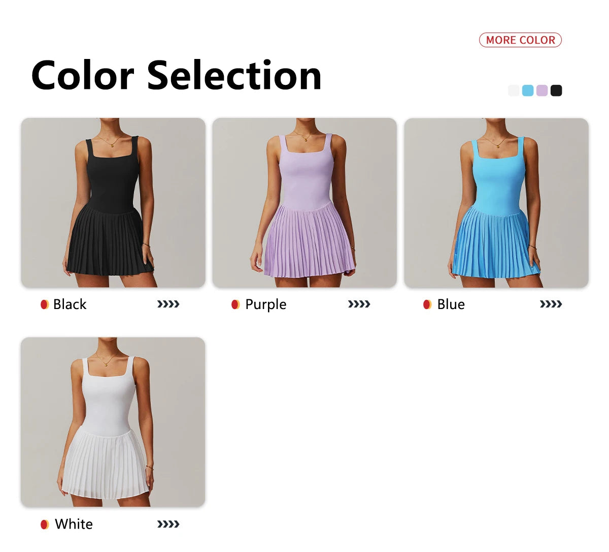 Tennis Skirt with Inner Lining - Pleated Golf Workout Dress with Pockets