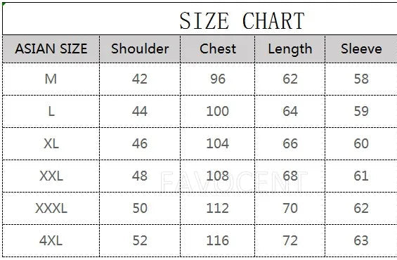 | UK Size | US Size | Euro Size | Chest (cm) | Shoulder (cm) | Length (cm) | Sleeve (cm) |