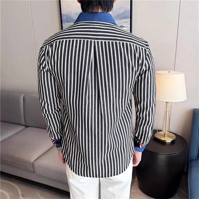 Men's Long Sleeve Striped Cotton Shirt - Smart Casual Square Collar
