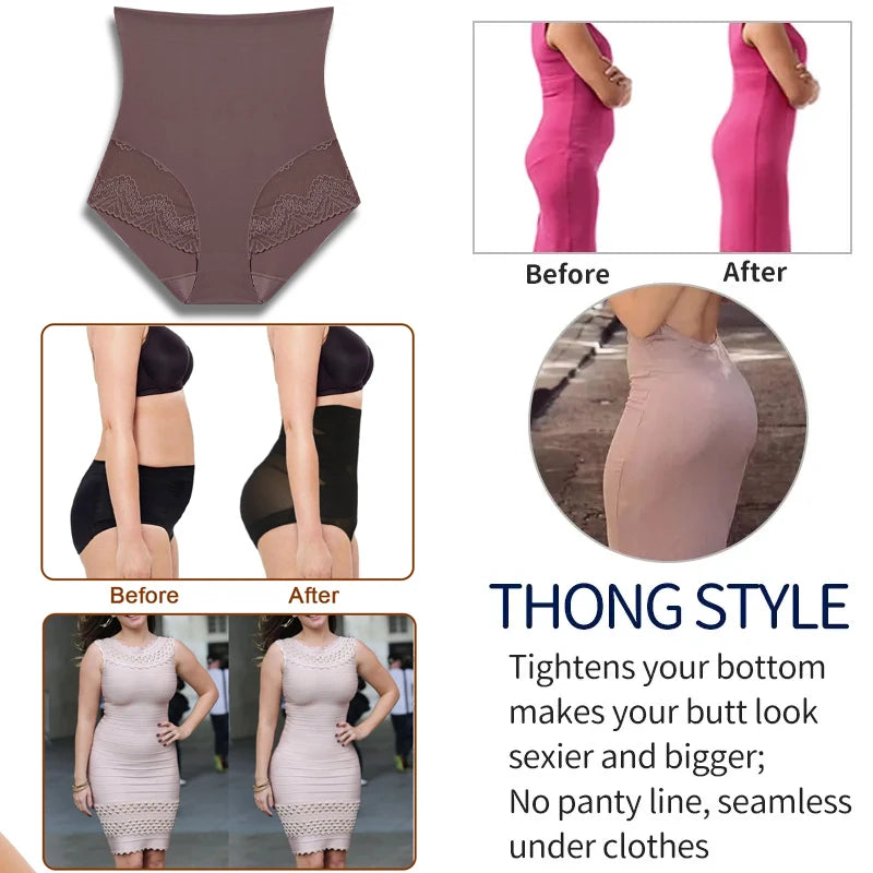 High Waist Tummy Control Panties - Women's Floral Lace Shaping Briefs (S-XXXL)