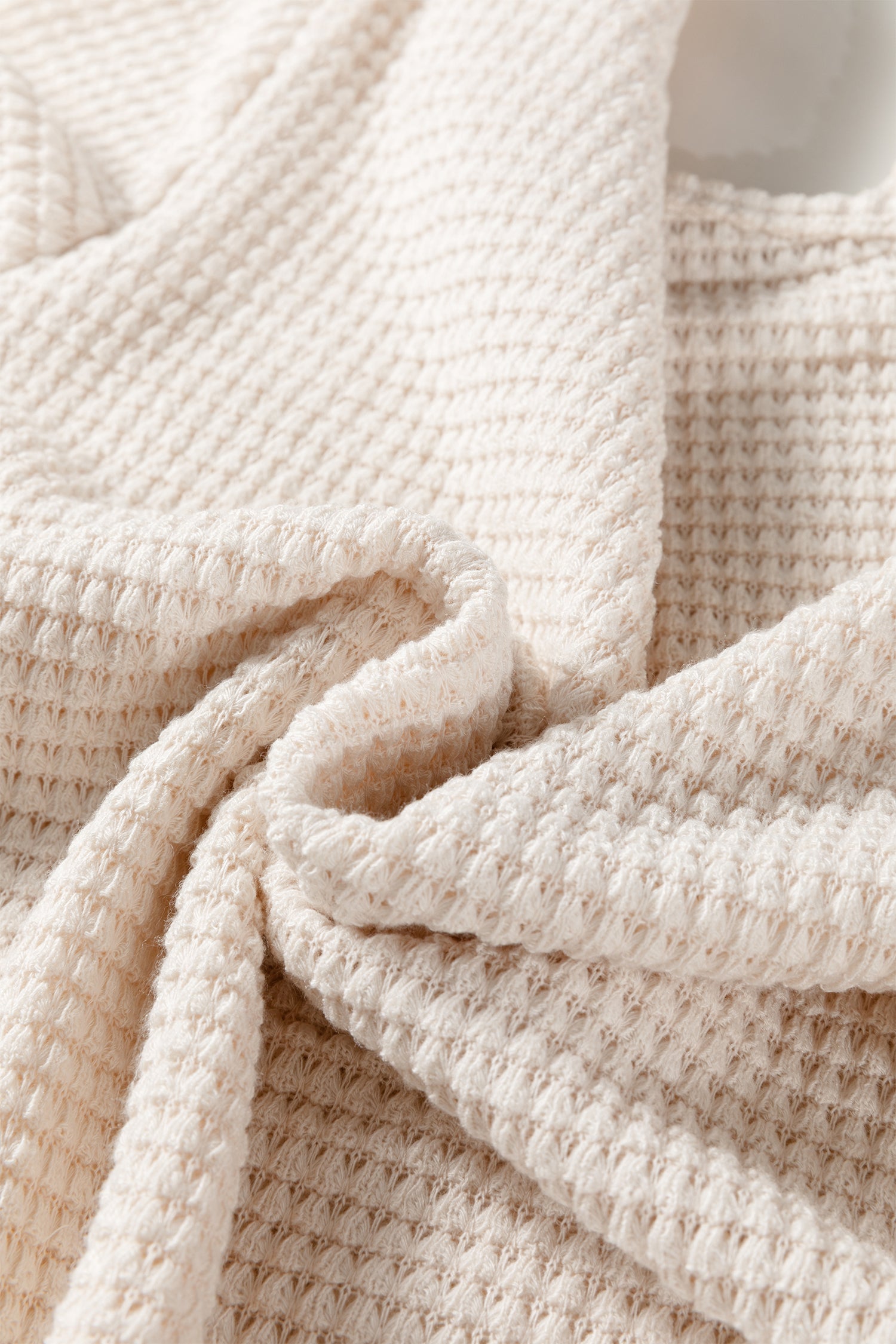 Solid Color Textured Knit Asymmetric Shoulder Long Sleeve Top