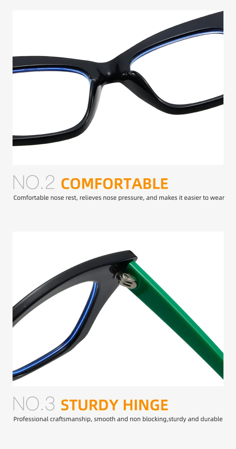 Protect your eyes in style with these fashionable cat eye blue light blocking glasses. Featuring a vintage-inspired oversized design, these trendy eyeglasses combine retro elegance with modern eye protection technology.