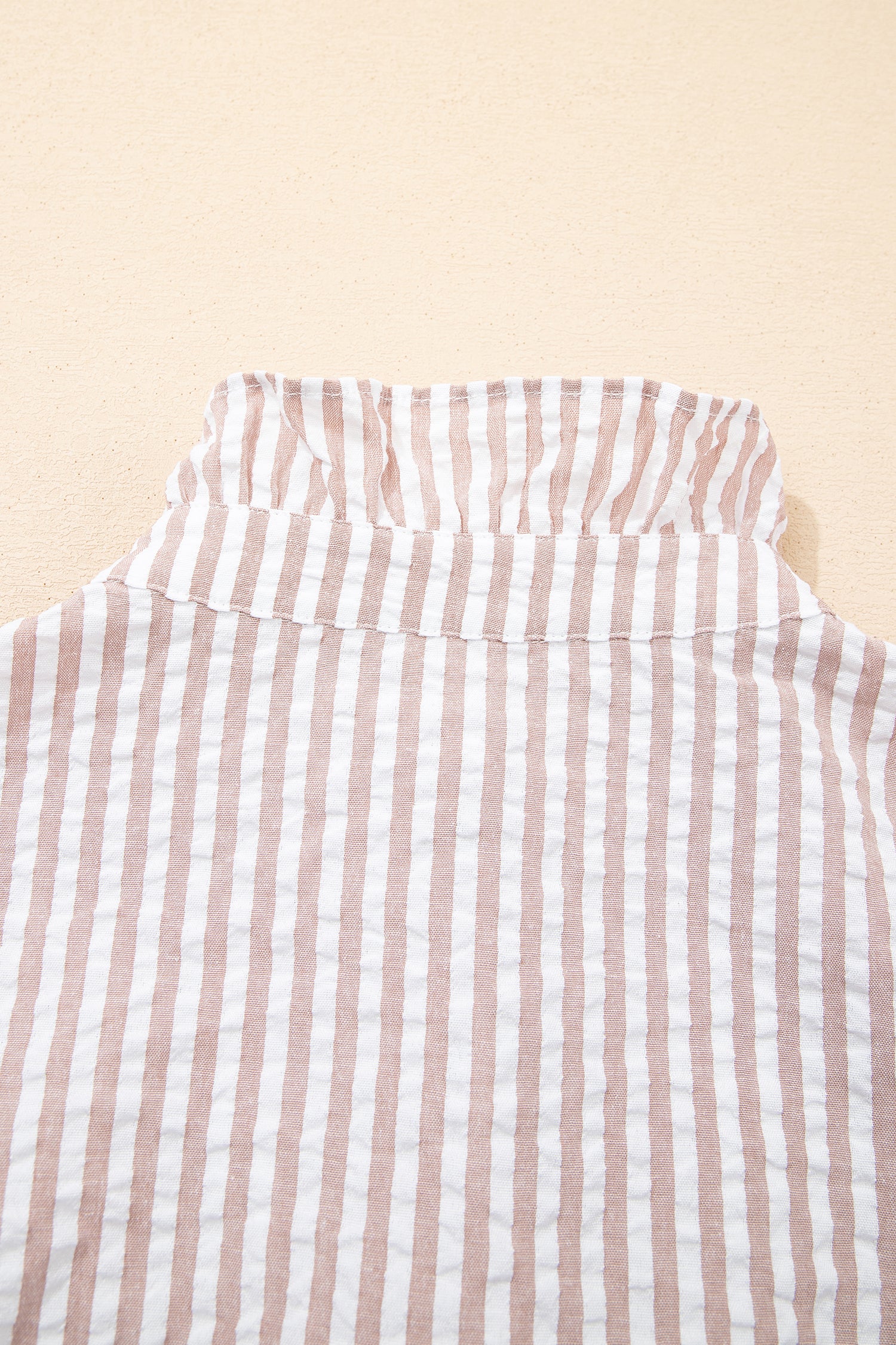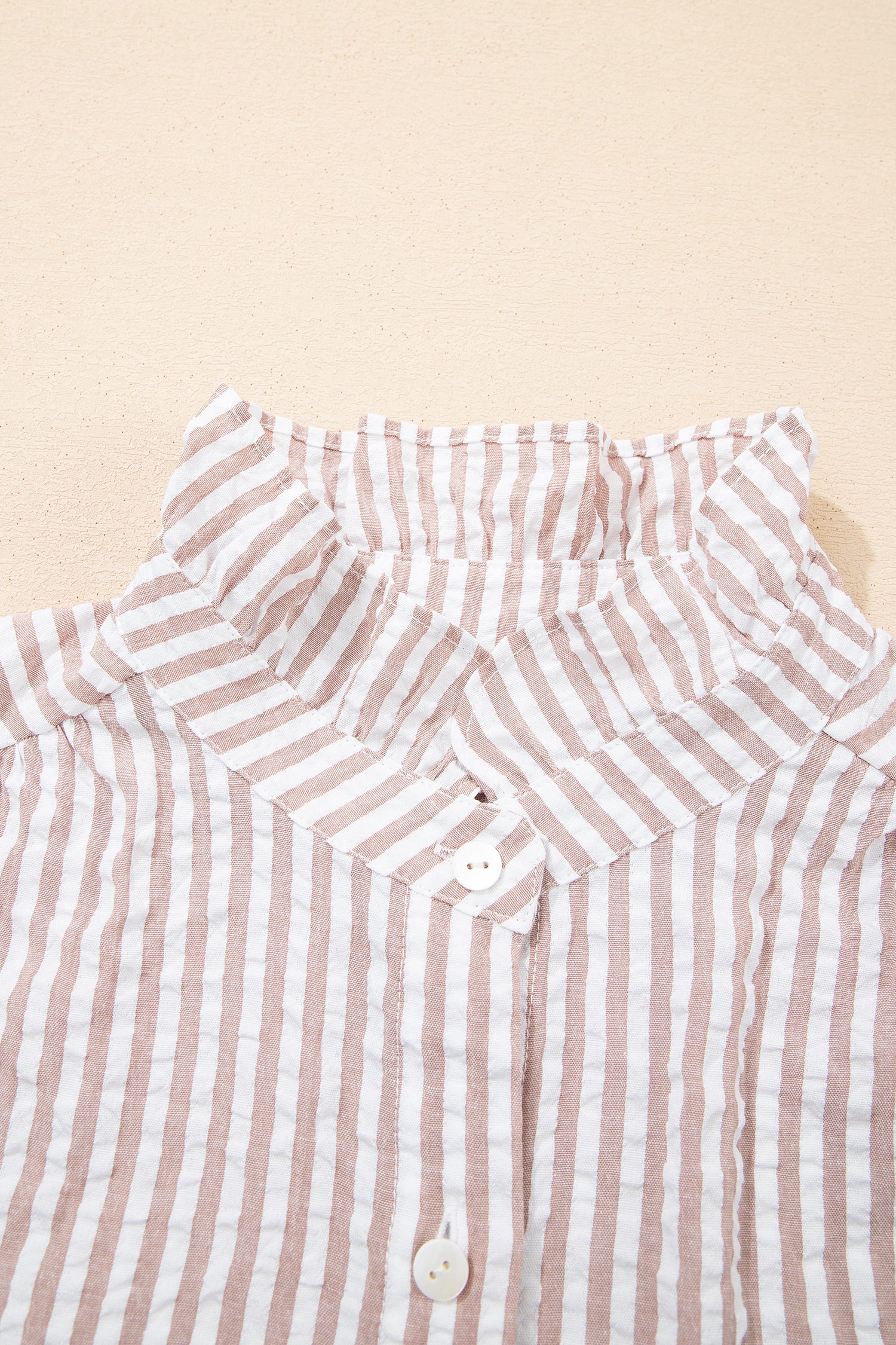 Step into effortless elegance with this charming maxi dress featuring classic stripe detailing, a feminine frilled collar, and flattering half sleeves. The sophisticated khaki tone and shirt-style design create a versatile piece that transitions beautifully from casual daytime outings to relaxed evening events.