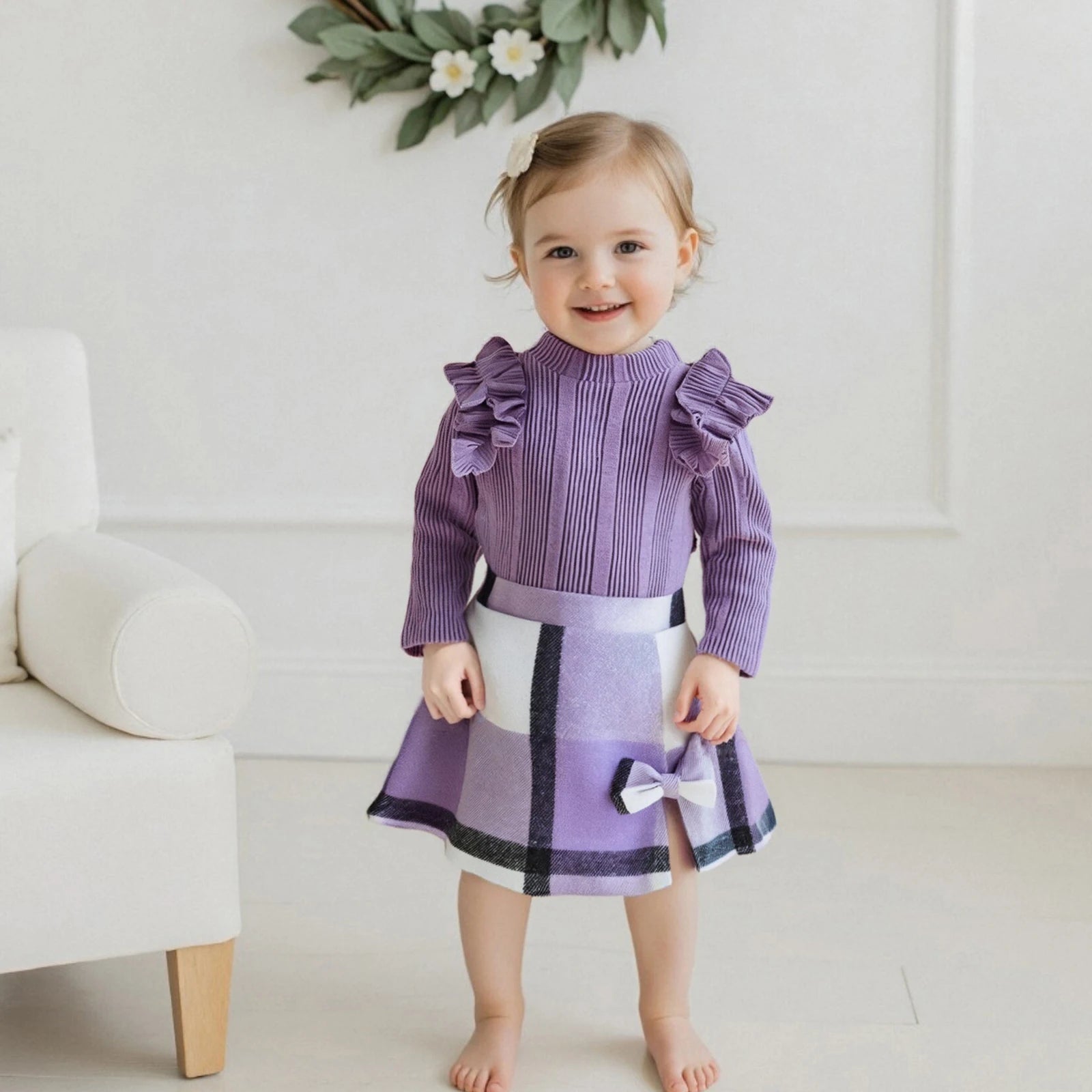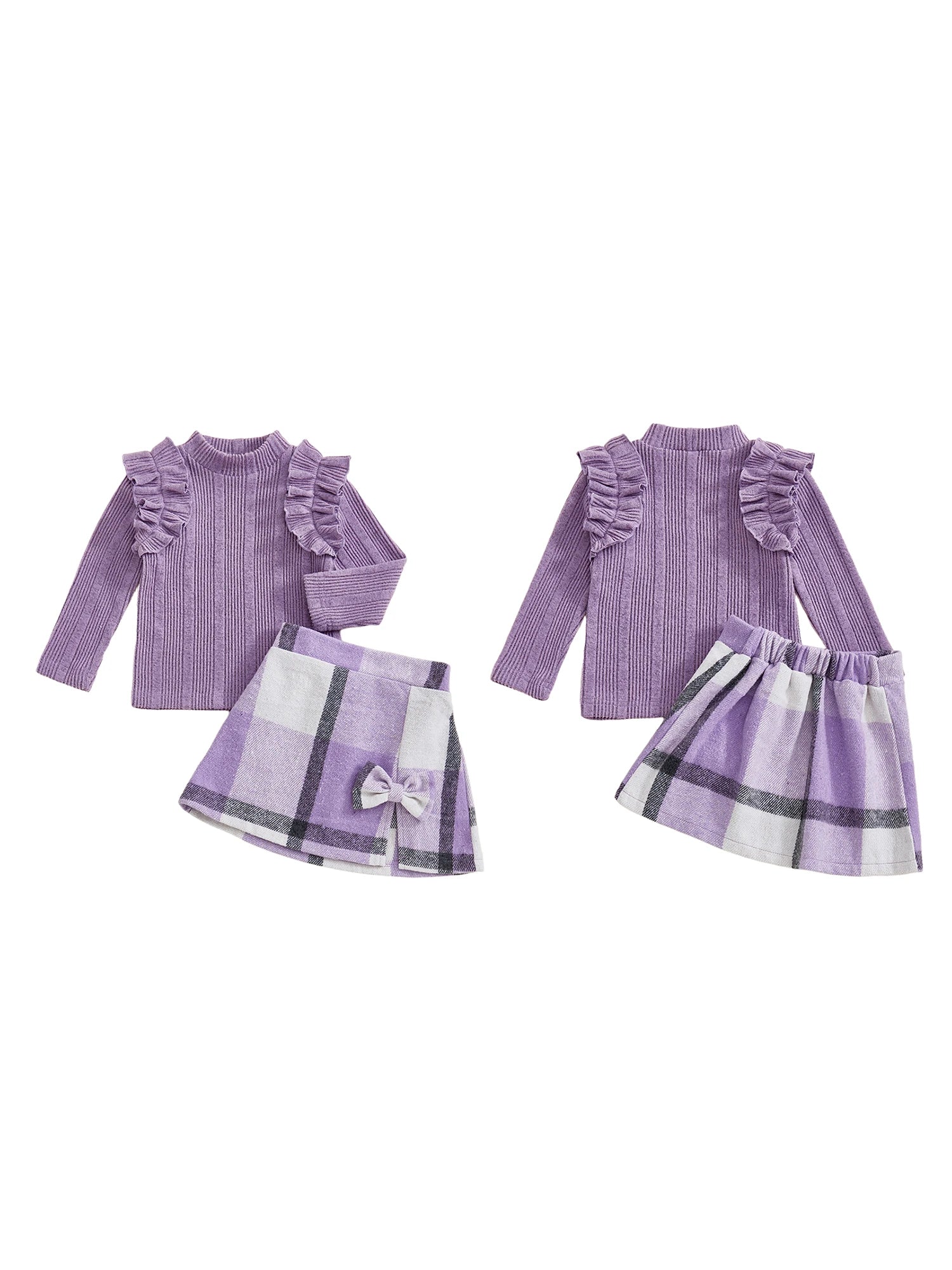 - Complete 2-piece set: long sleeve t-shirt and plaid skirt