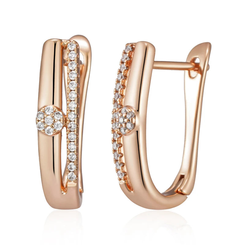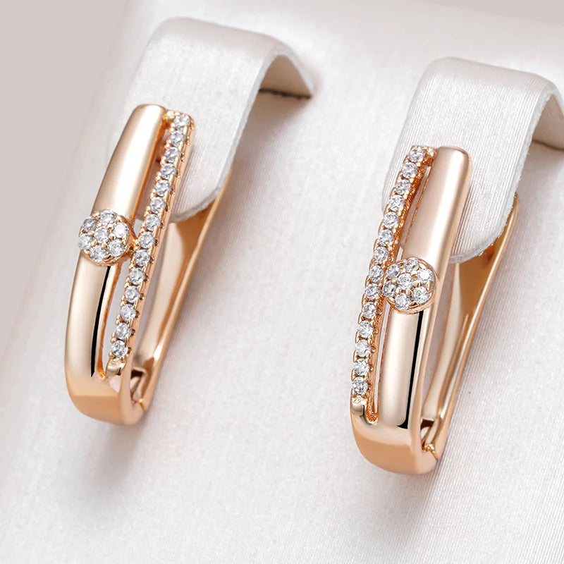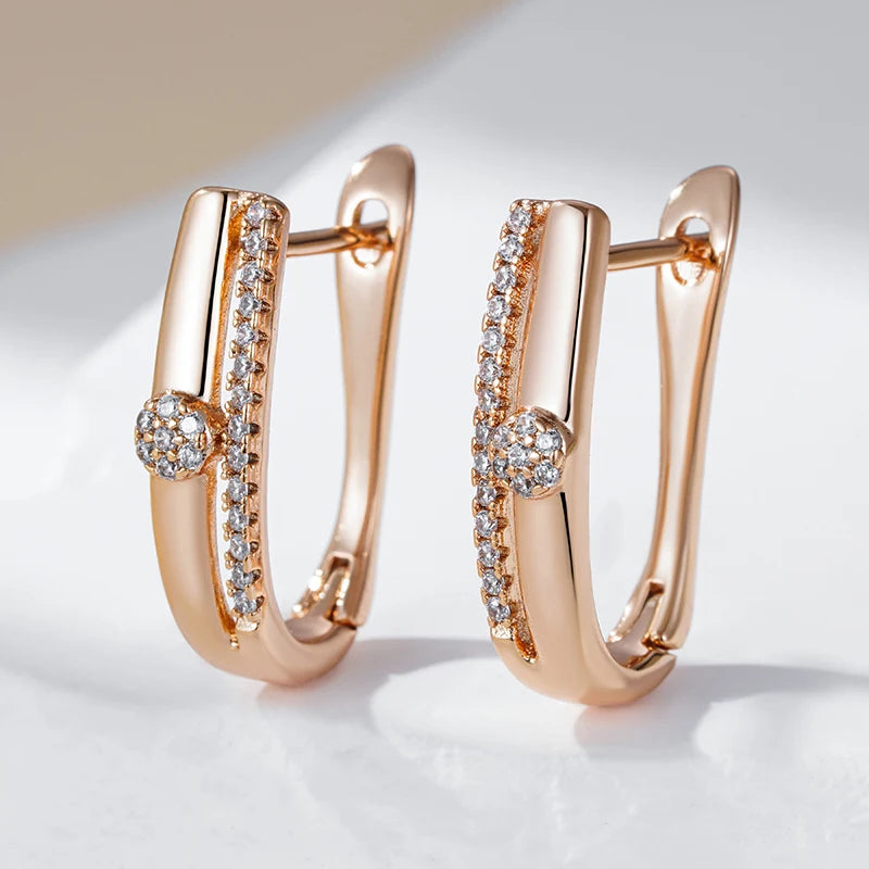 Elevate your everyday style with these sophisticated geometric hoop earrings. Featuring a modern design in luxurious 585 rose gold color, these earrings are adorned with sparkling natural zircon stones that catch the light beautifully with every movement.