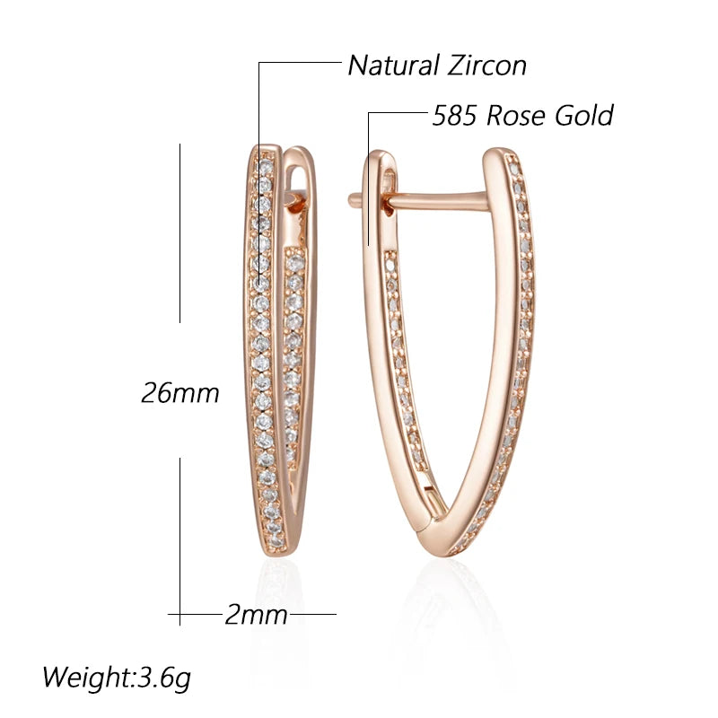 Rose Gold V-Shape Hoop Earrings - Natural Zircon Women's Jewelry