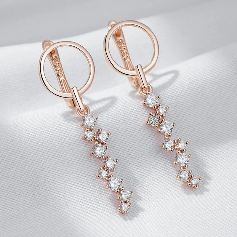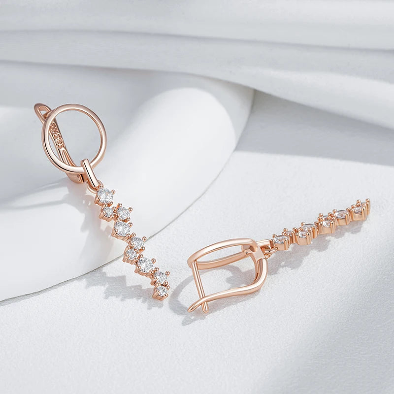 Rose Gold Natural Zircon Long Drop Earrings - Crystal Wedding Jewelry