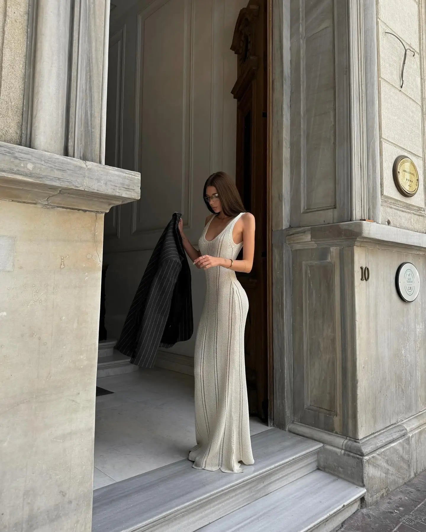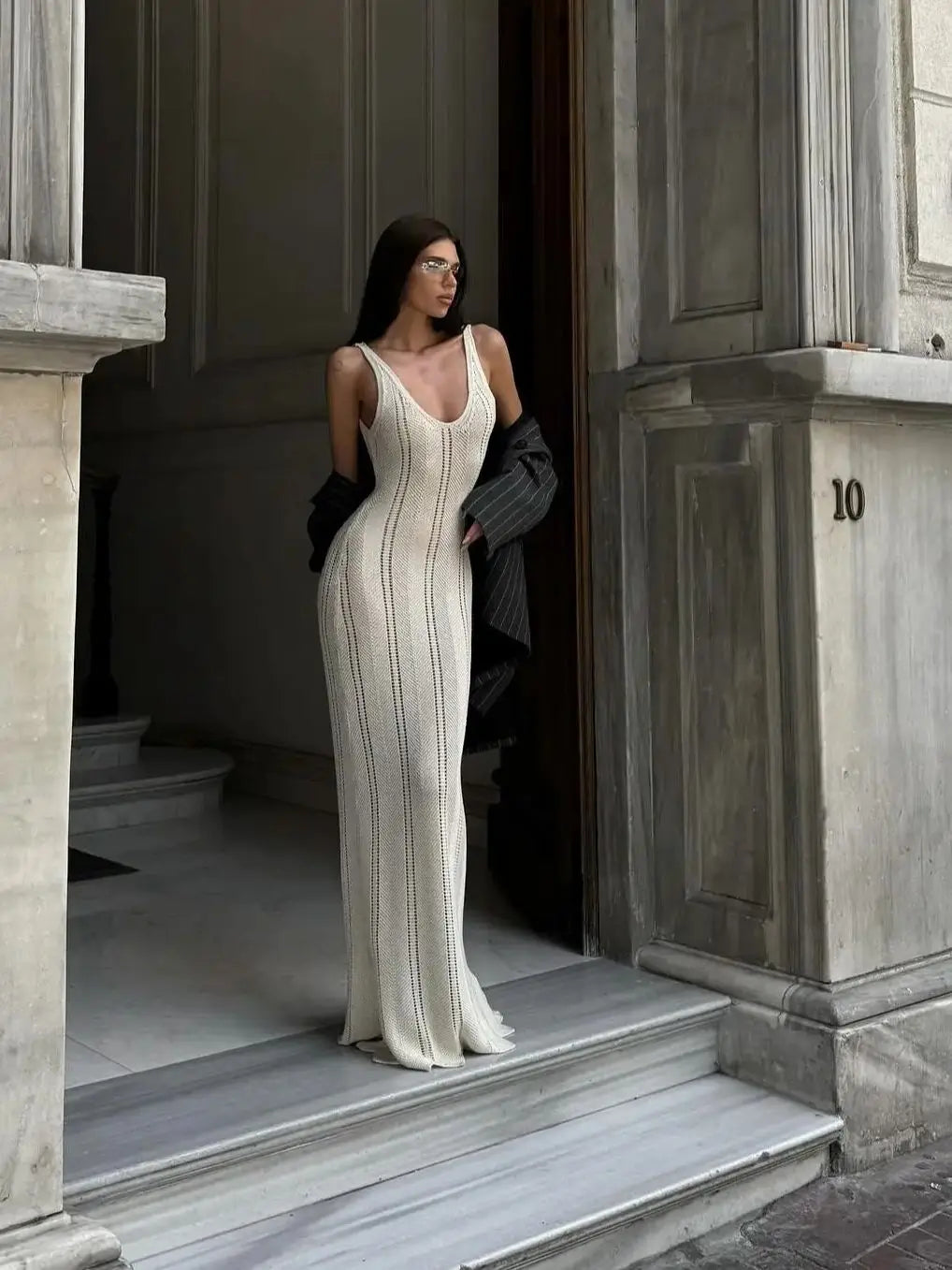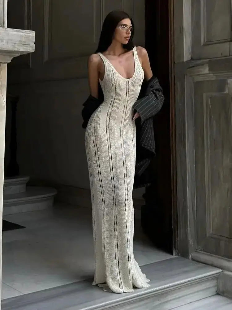 Crochet Knit Long Dress - Sleeveless Backless Bodycon Summer Cover Up