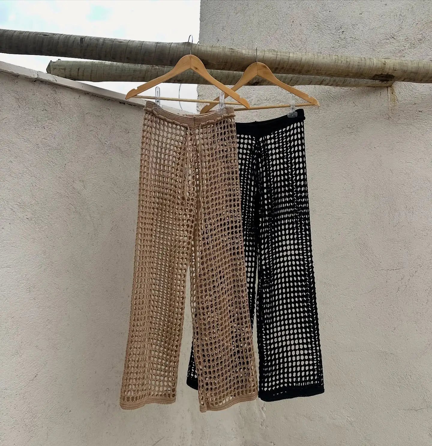 Elegant Wide Leg Knit Pants - Women's Summer Elastic Waist Trousers
