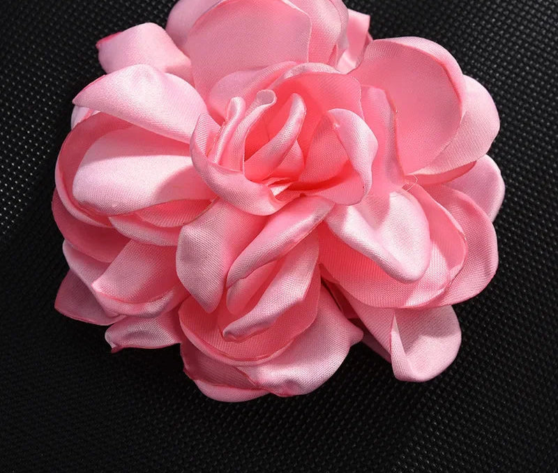 Large Fabric Rose Flower Brooch - 8cm Lapel Pin for Women