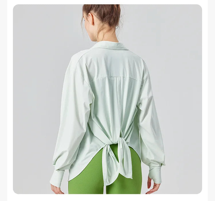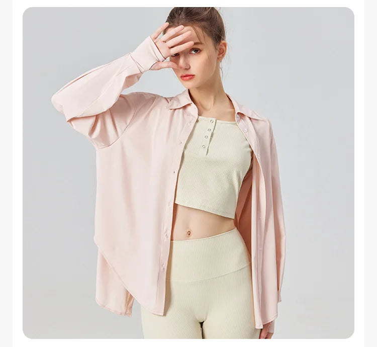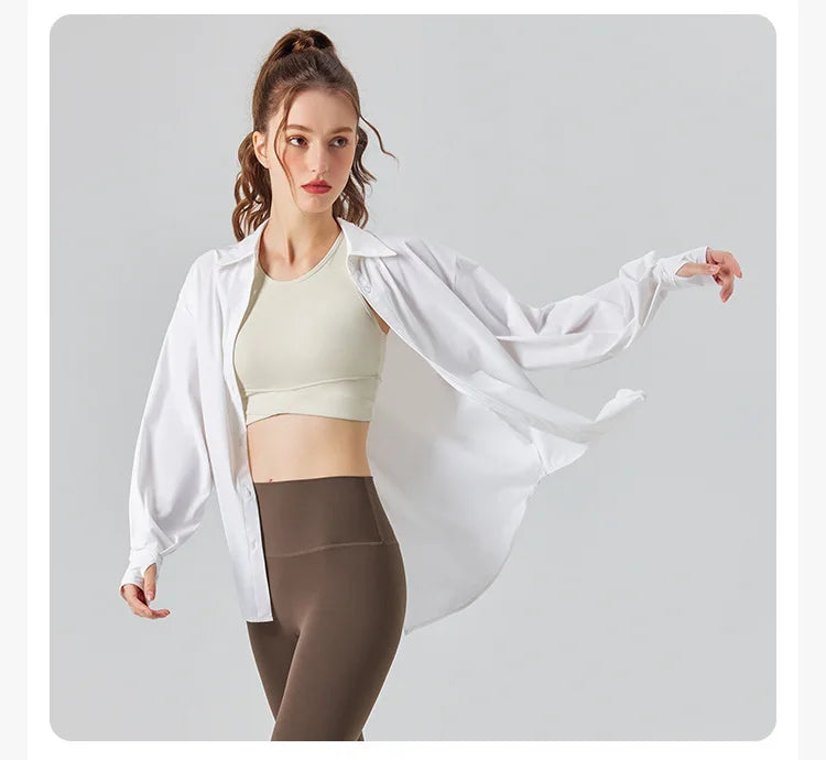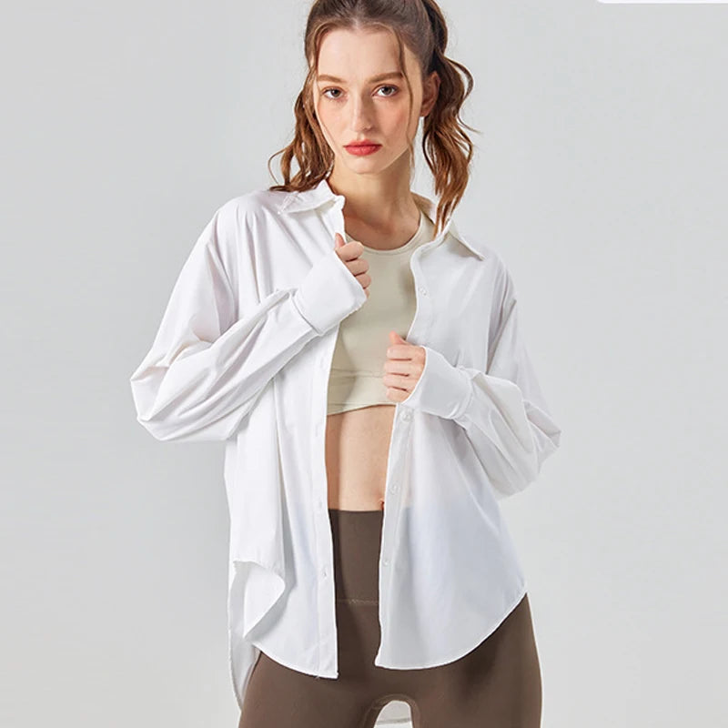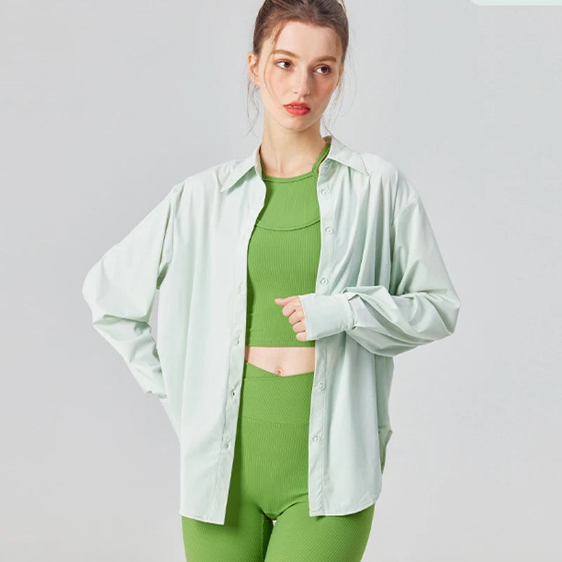 Whether you're flowing through morning yoga in the park or pushing through an intense outdoor run, this long sleeve shirt provides the perfect balance of protection, comfort, and style. The lightweight fabric feels like a second skin while keeping harmful UV rays at bay.