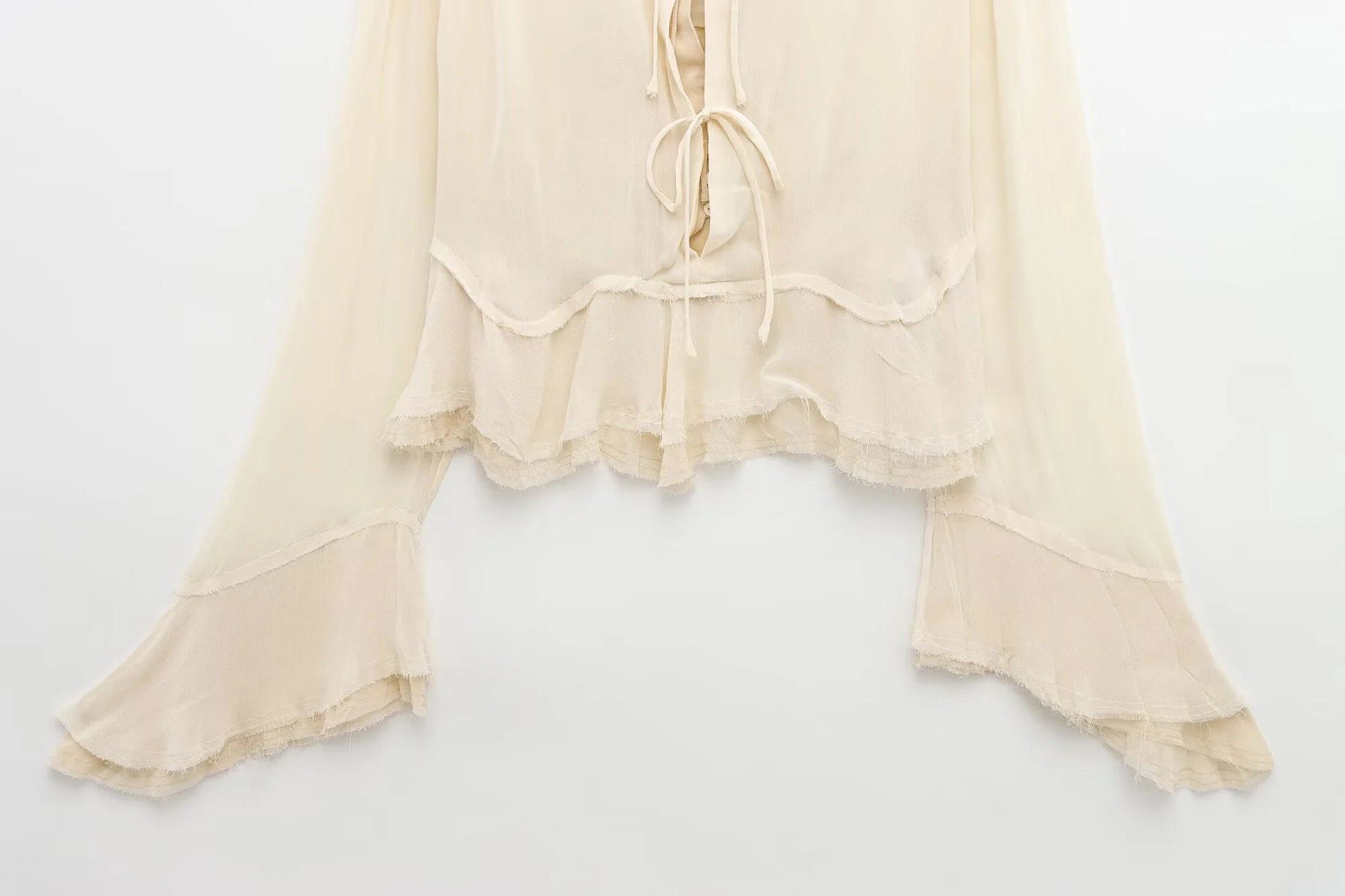 Women's Summer Lace-Up Cardigan - Lightweight Long Sleeve Top