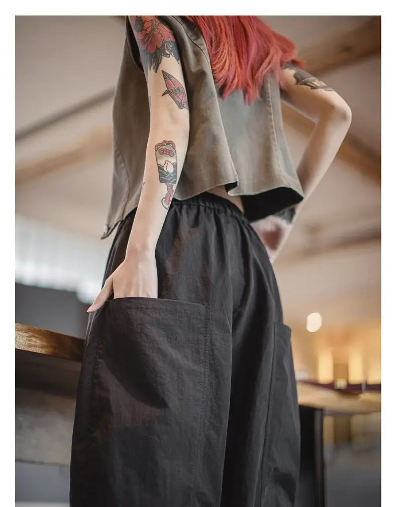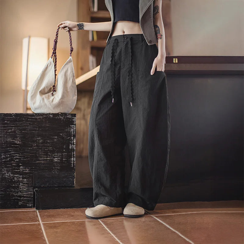 Women's Wide Leg Palazzo Pants - Lightweight Casual Streetwear Trousers