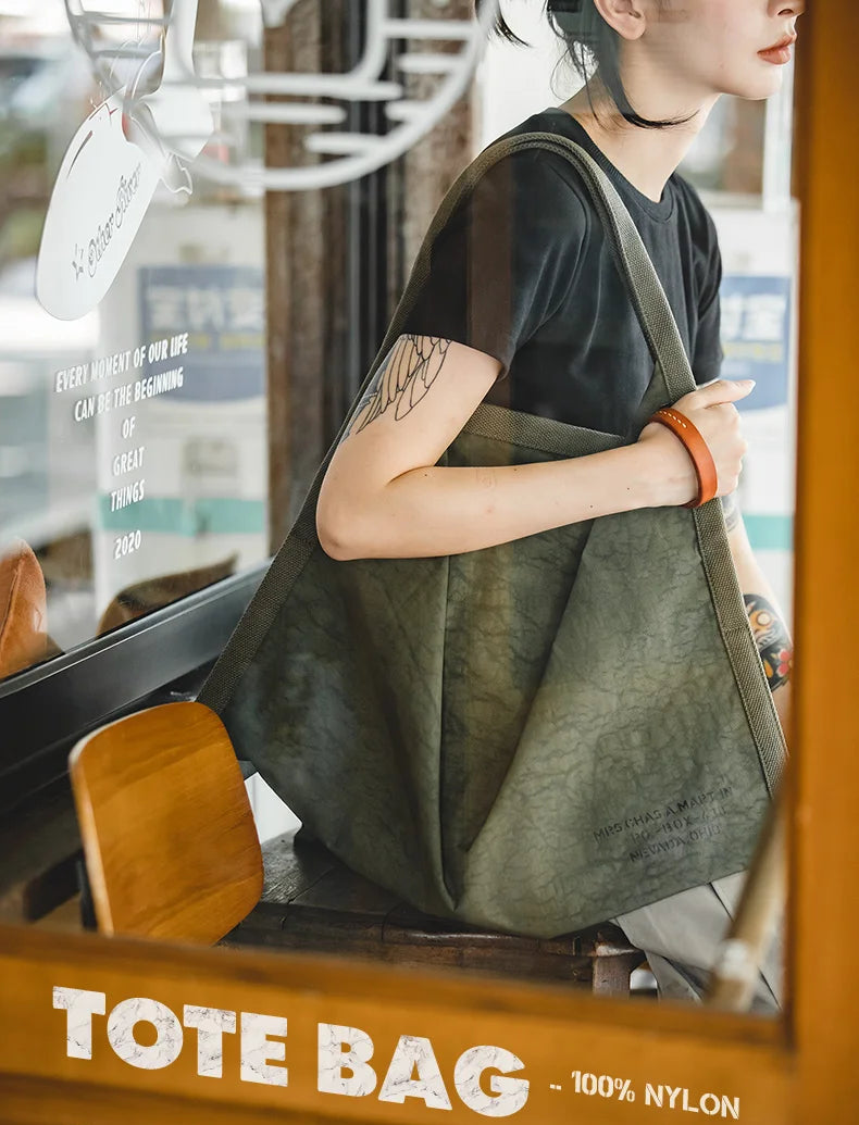 Women's Vintage Nylon Handbags Large Capacity Waterproof Shoulder Bag Retro Tote Bag