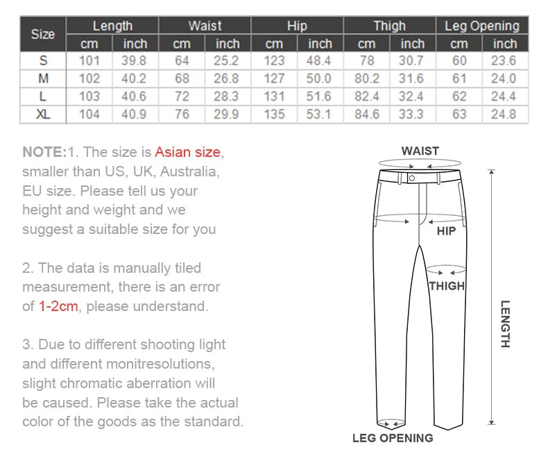 | Size | Waist (cm) | Hip (cm) | Length (cm) | Inseam (cm) |