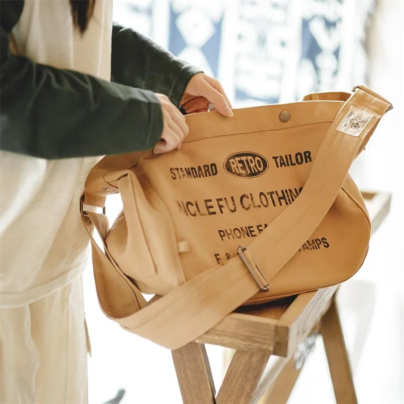 Retro Canvas Messenger Bag - Large Capacity Crossbody Tote