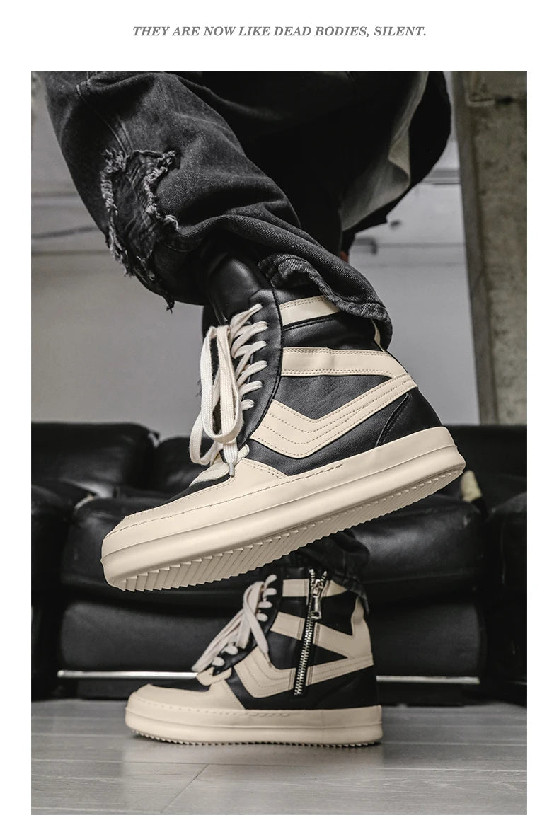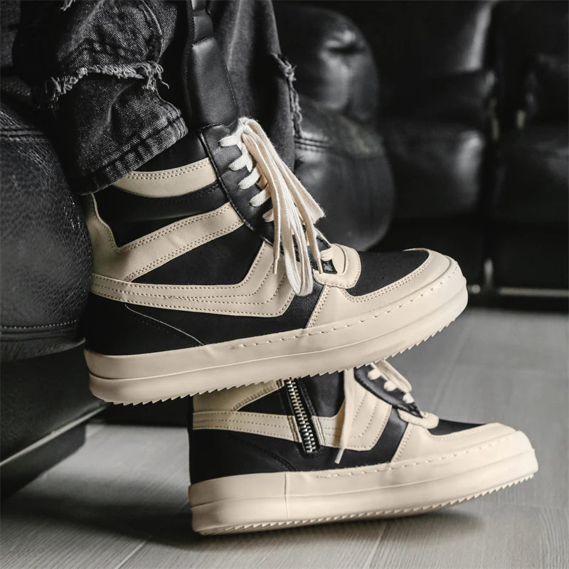 Premium leather high-top sneakers that blend athletic performance with refined style. These versatile lace-up ankle boots deliver the perfect balance of comfort and sophistication for the discerning modern man.