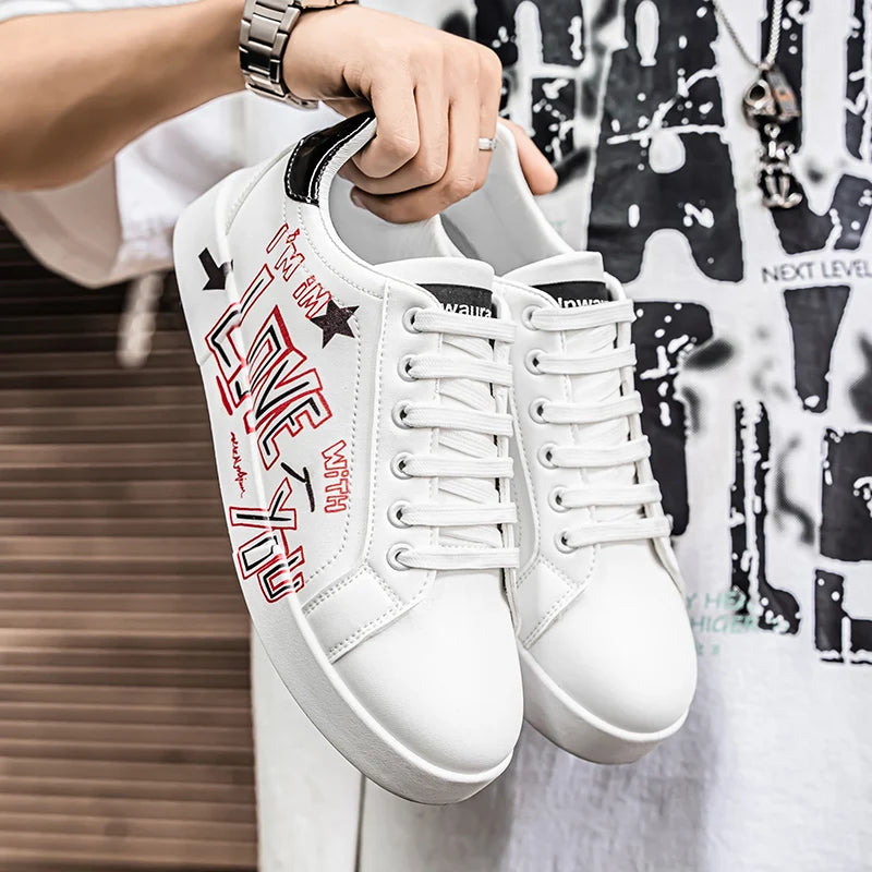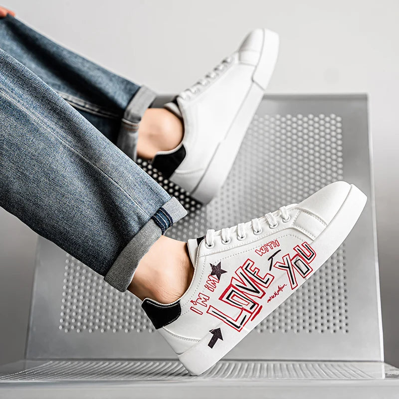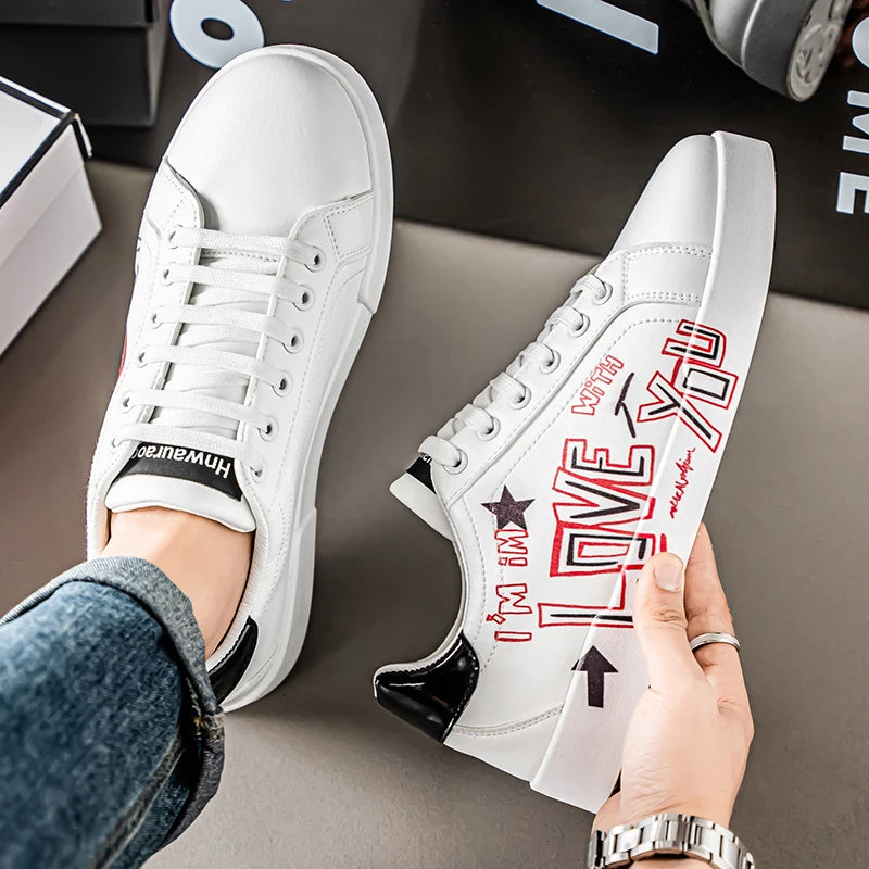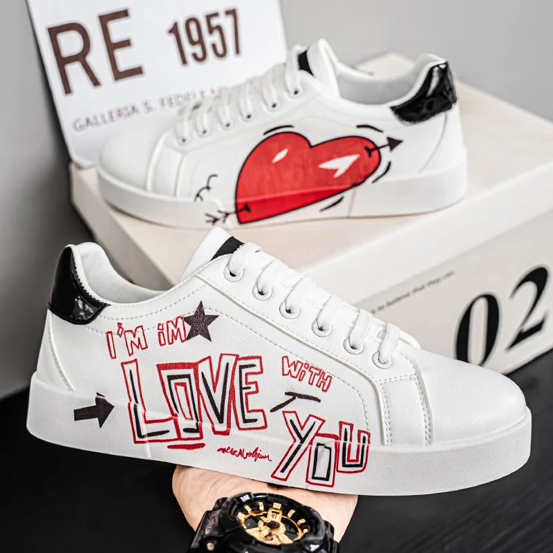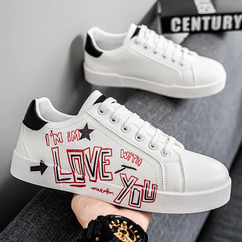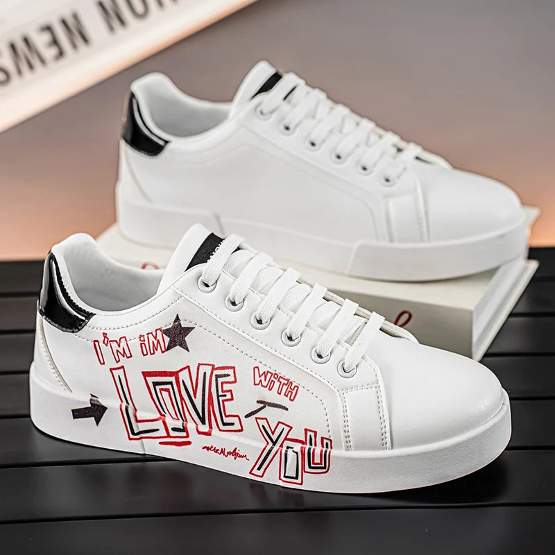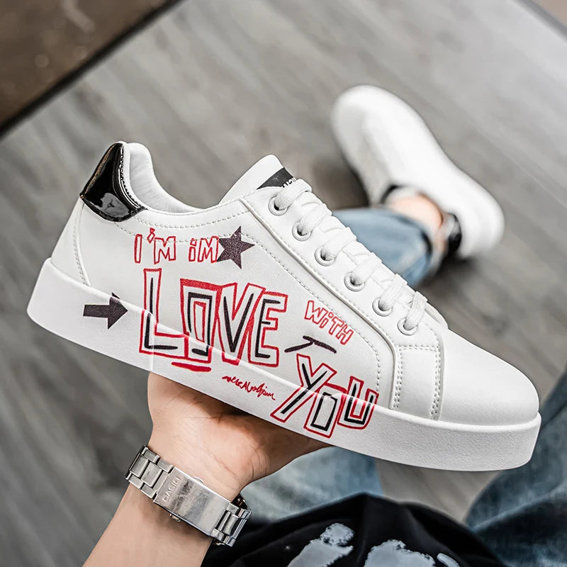 Men's Graffiti Design Platform Skateboard Sneakers - High Quality Sport Trainers
