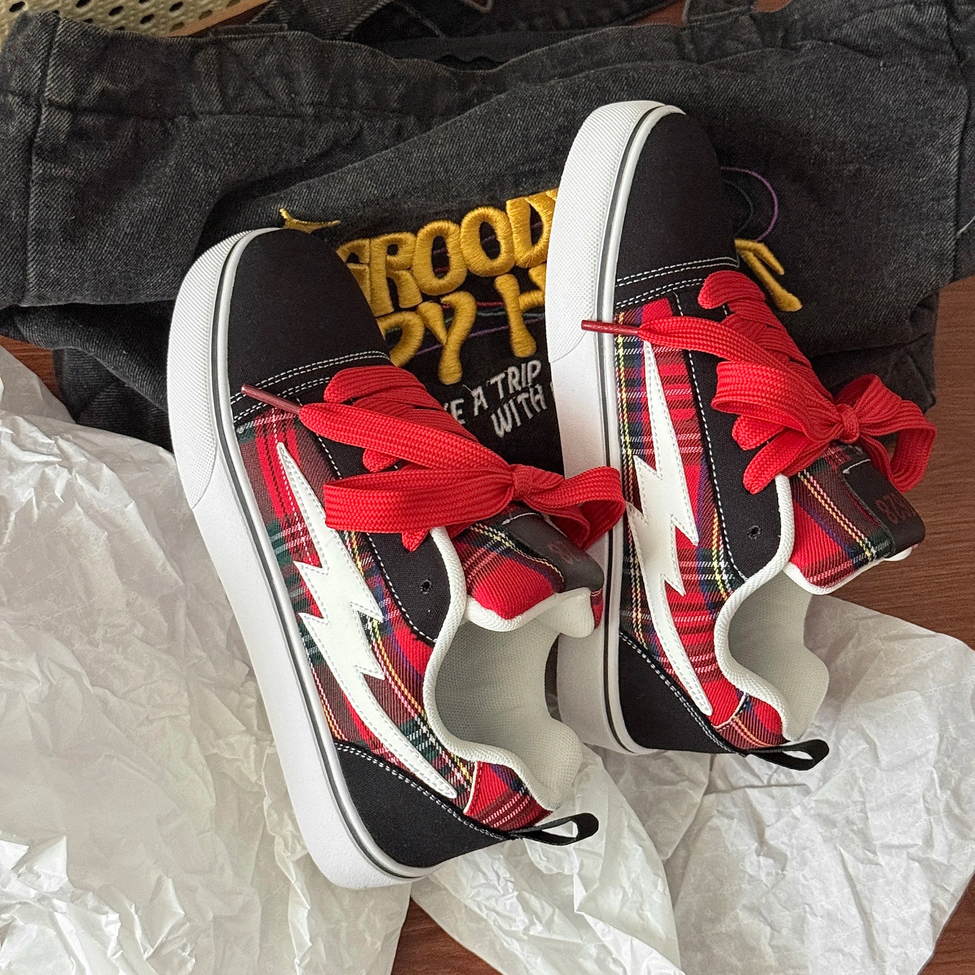 Stand out from the crowd with these eye-catching lightning-detailed sneakers that bring energy and attitude to your footwear collection. Designed for both men and women, these versatile trainers combine striking graphics with athletic performance for a look that's as dynamic as your lifestyle.