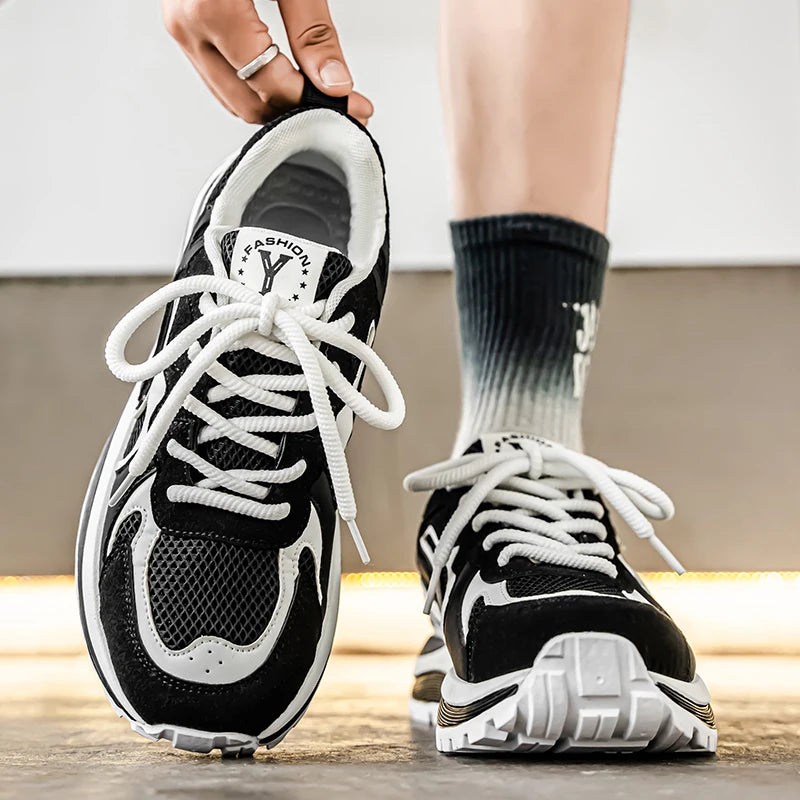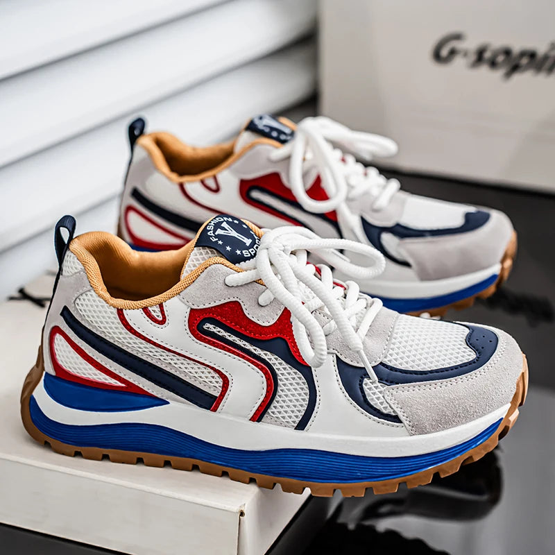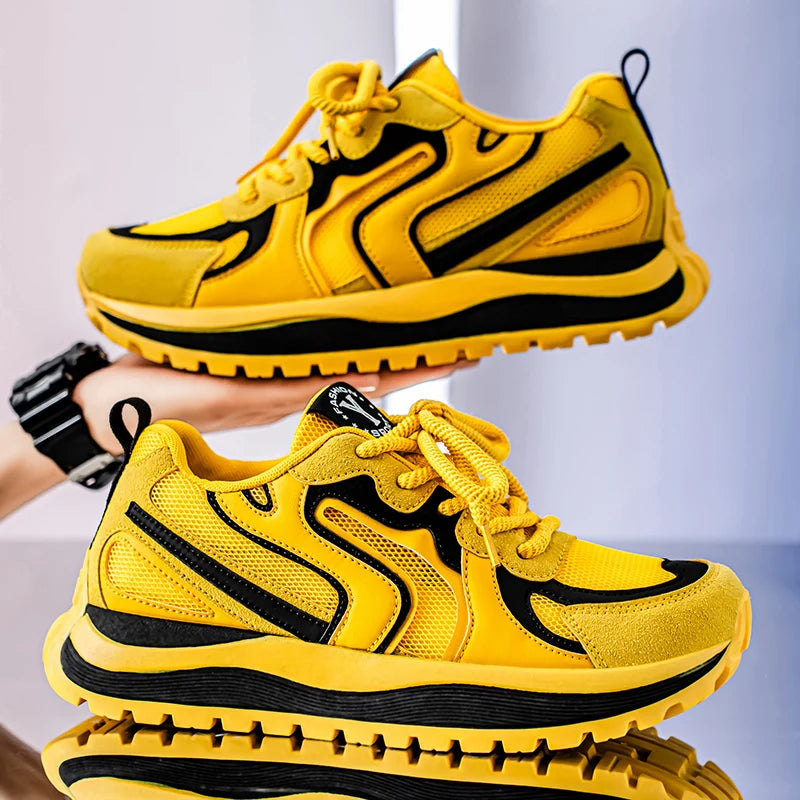 Elevate your athletic and casual style with these fashionable men's platform vulcanized sneakers. Featuring breathable construction and a trendy platform design, these versatile lace-up shoes are perfect for running, tennis, outdoor activities, and everyday casual wear.