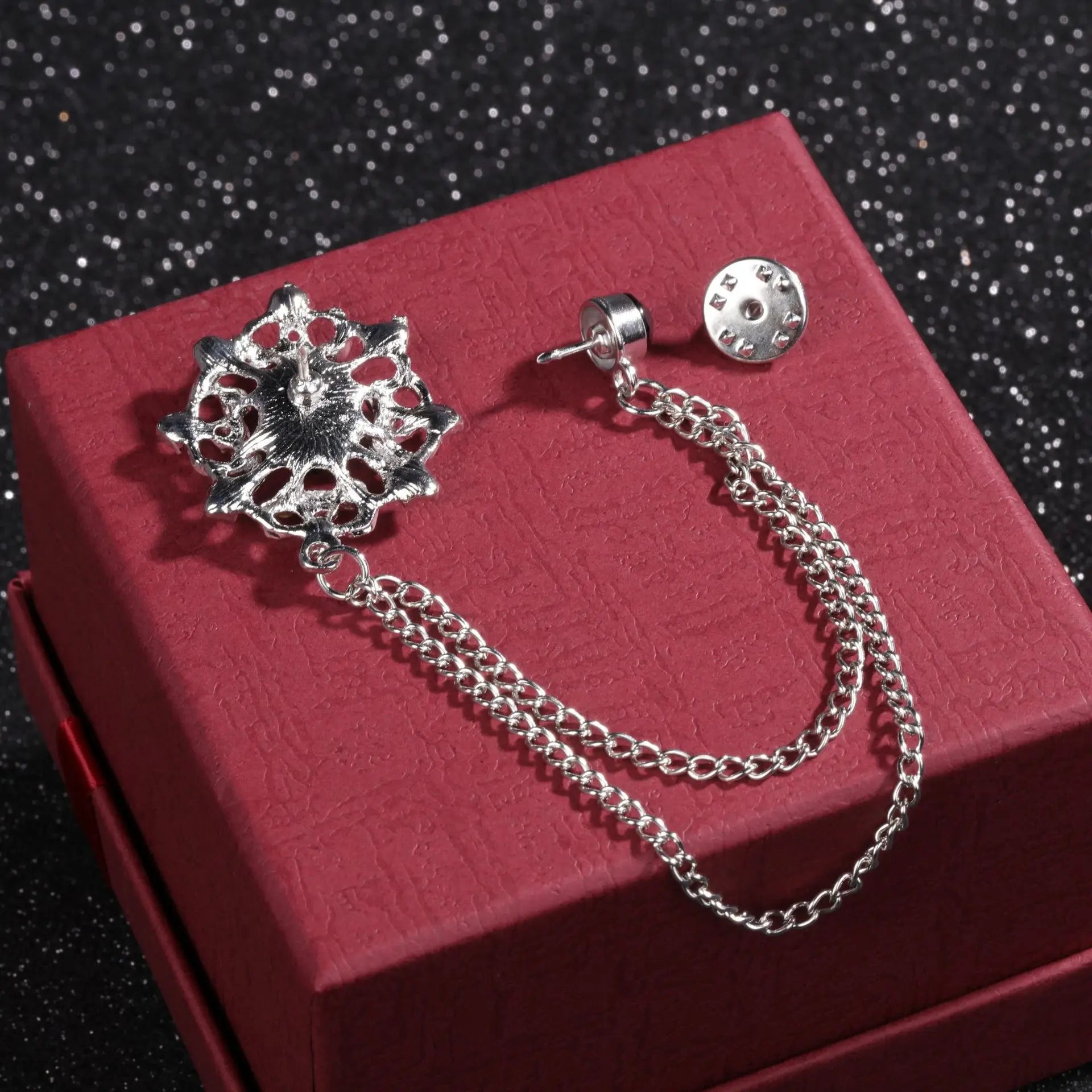 Men Rhinestone Classic Chain Badges Pin Brooches