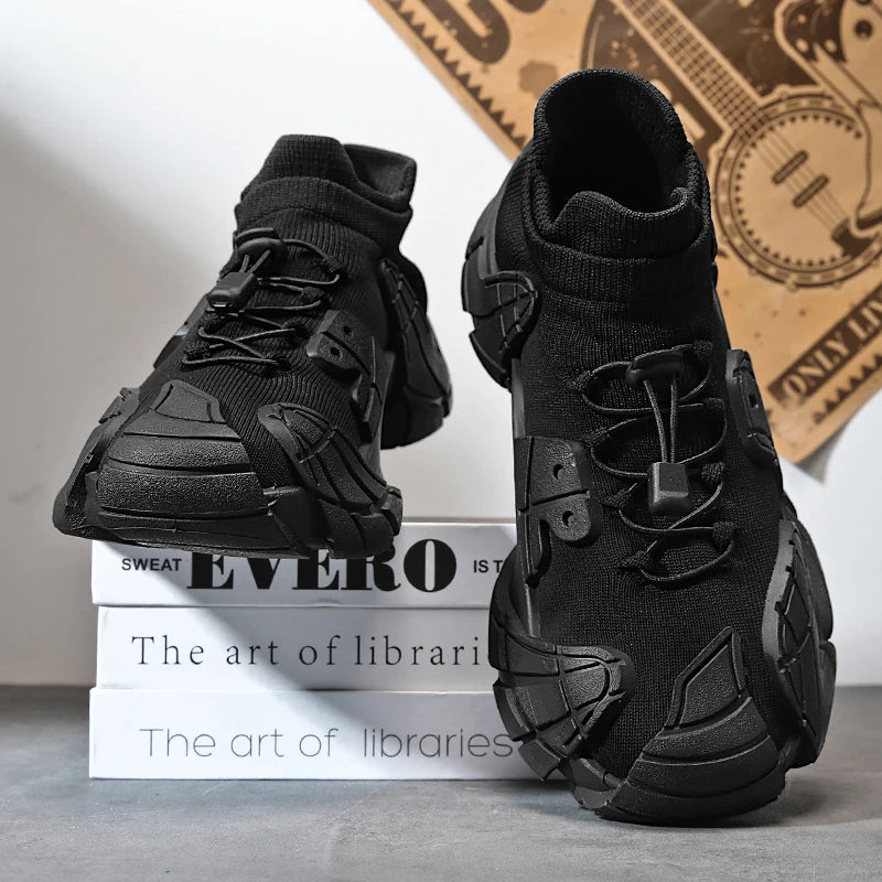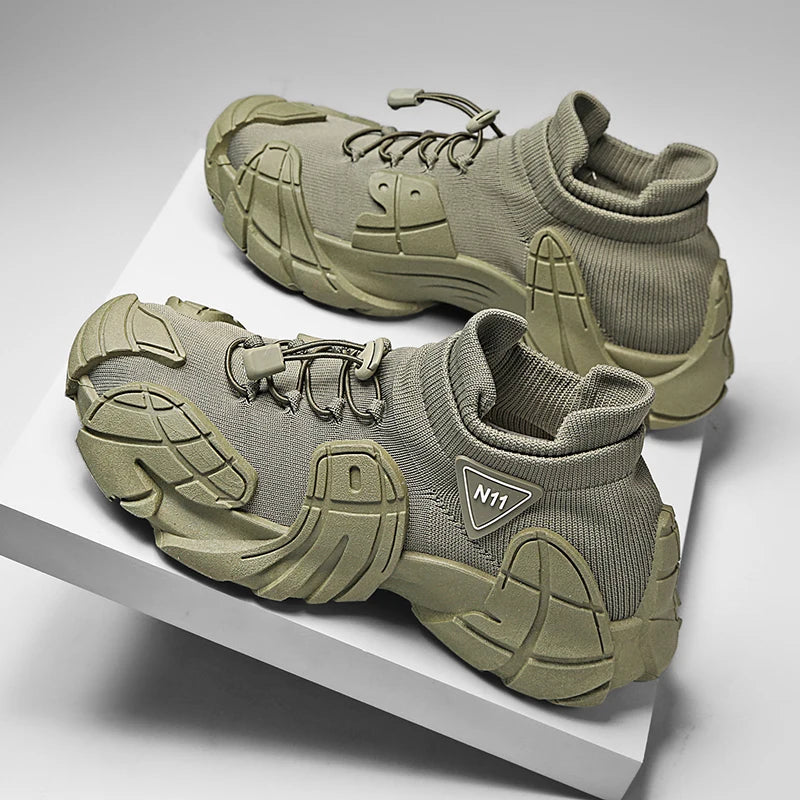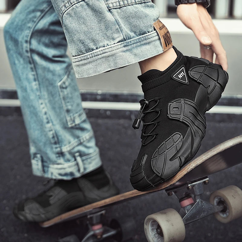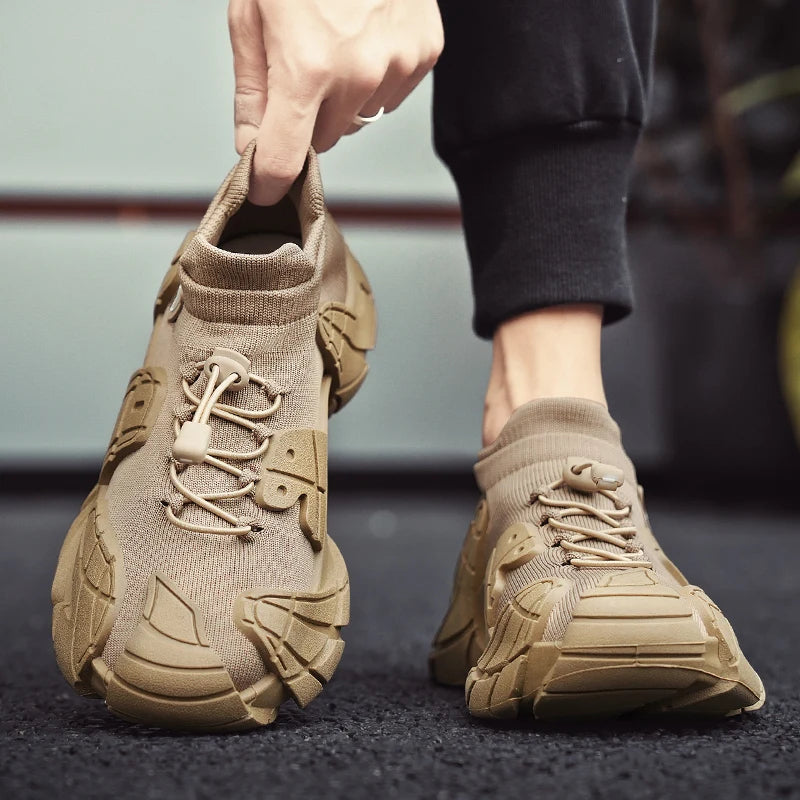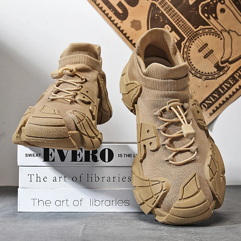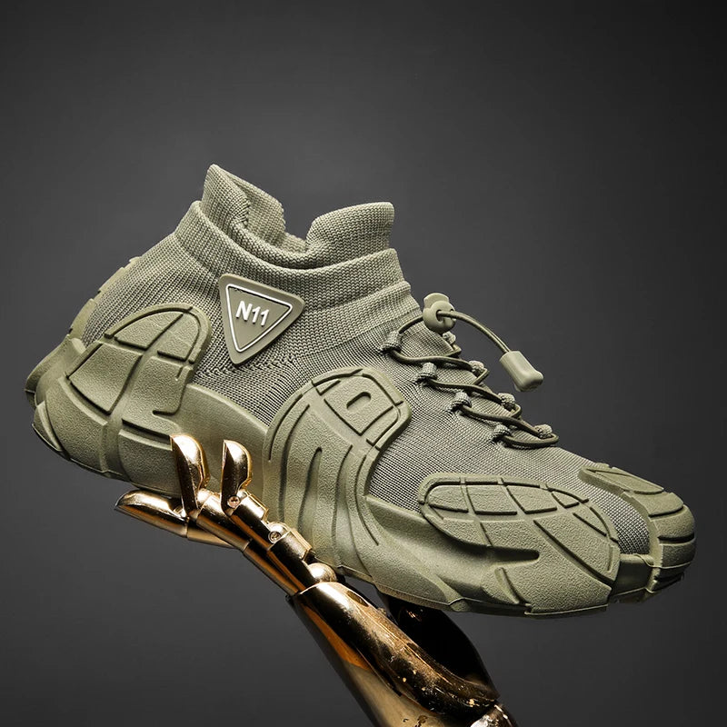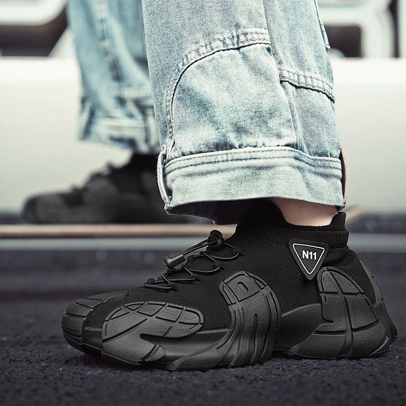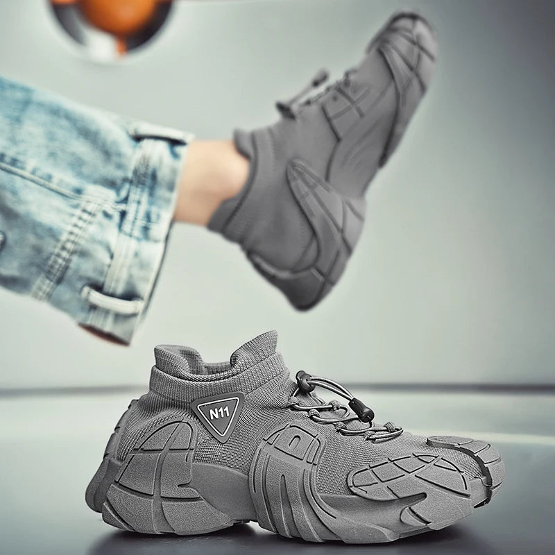 Men's Sports Mesh Running Sneakers Slip On Comfortable High Top Lace Up Sneakers