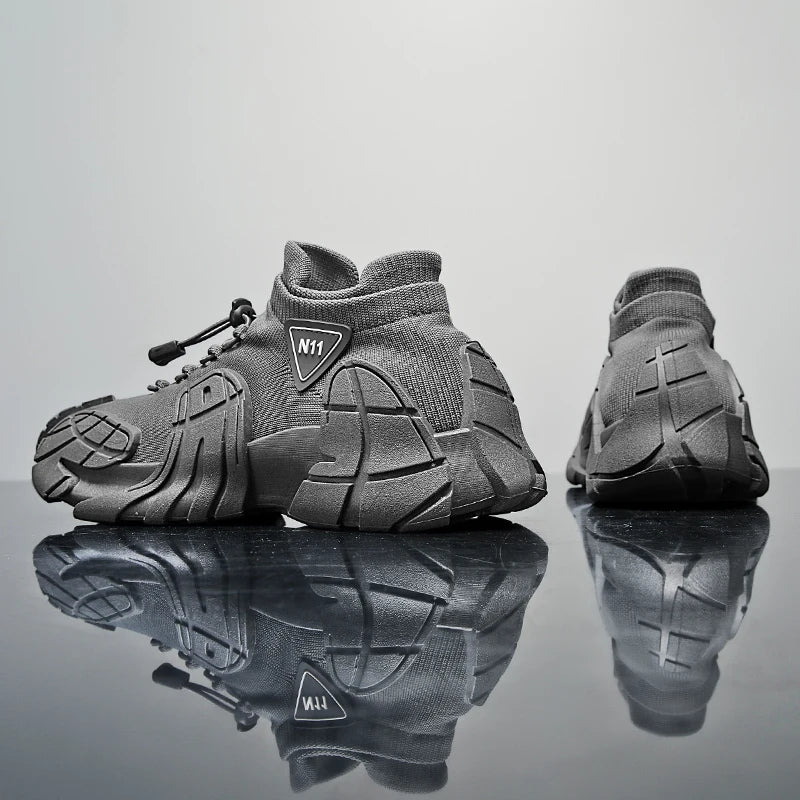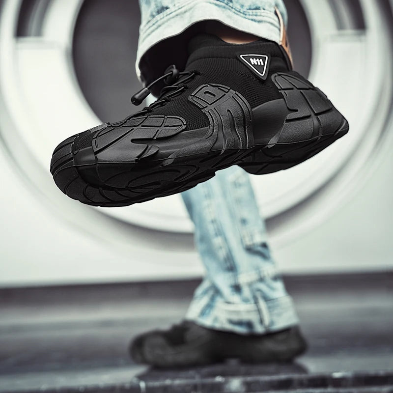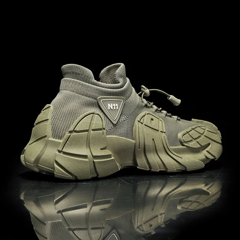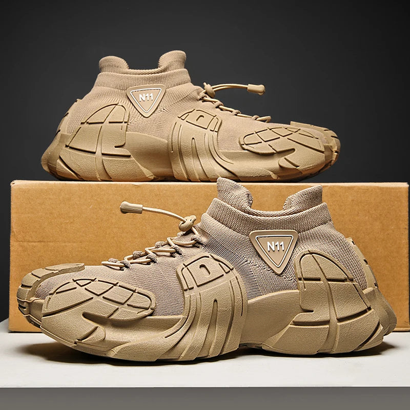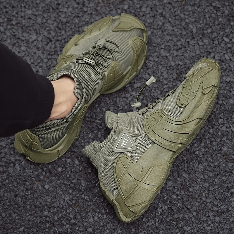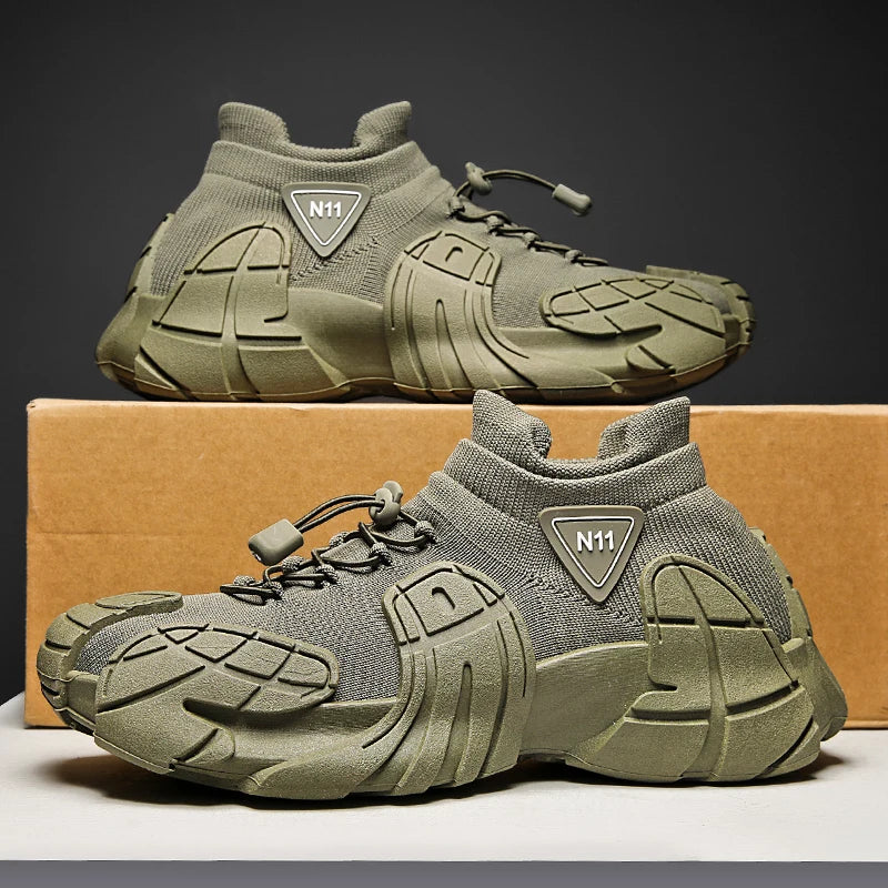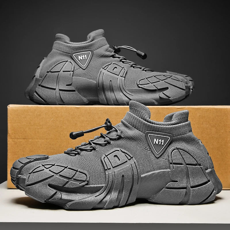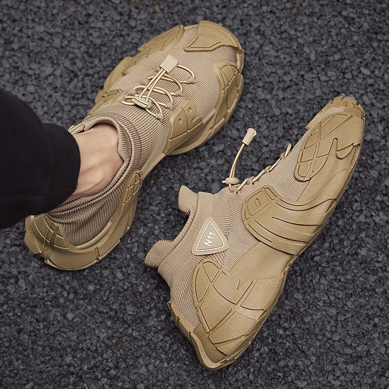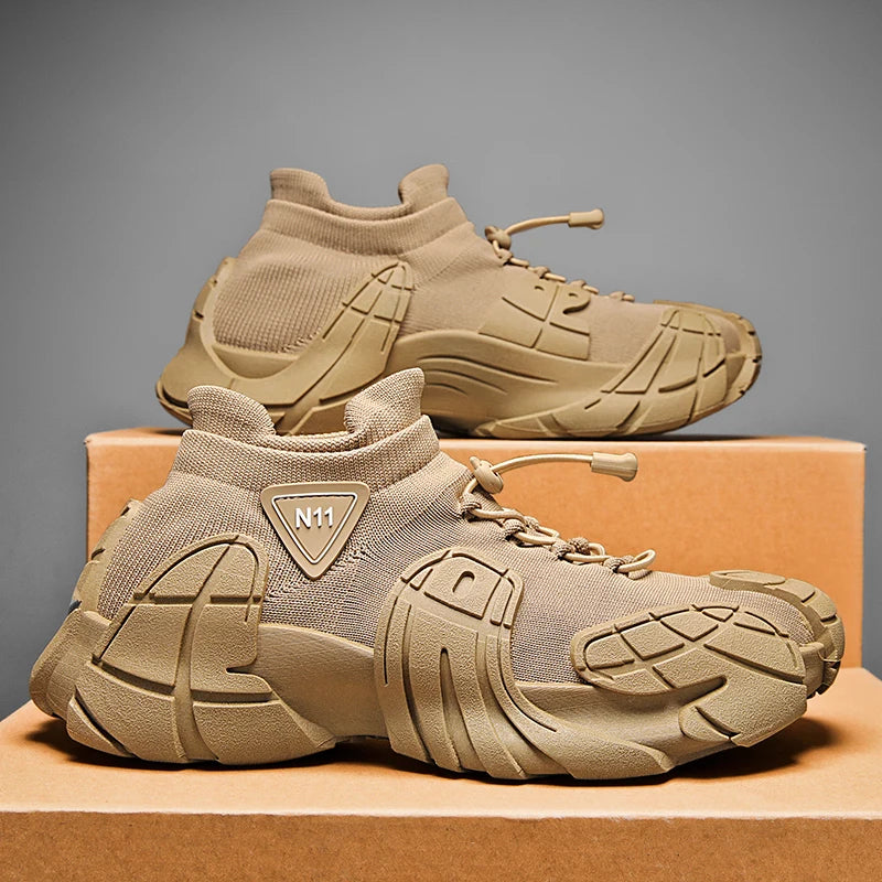 Men's Sports Mesh Running Sneakers Slip On Comfortable High Top Lace Up Sneakers