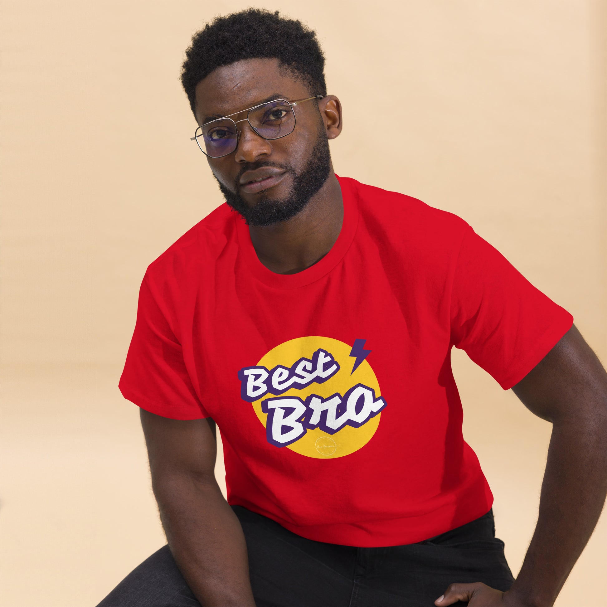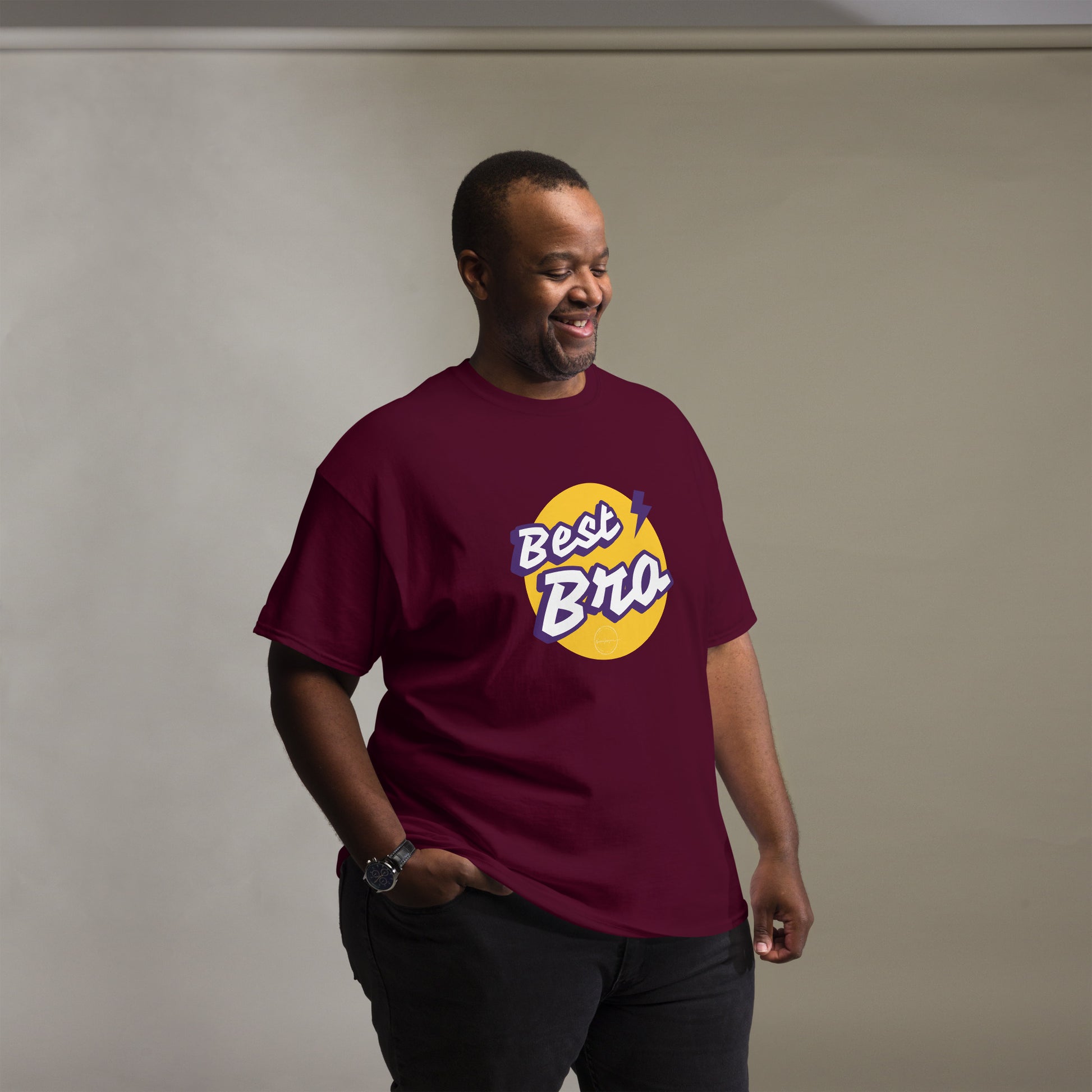 The 100% cotton men's classic tee will help you land a more structured look. It sits nicely, maintains sharp lines around the edges, and goes perfectly with layered streetwear outfits. Plus, it's extra trendy now!