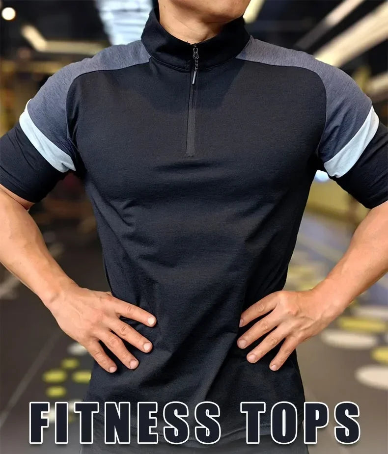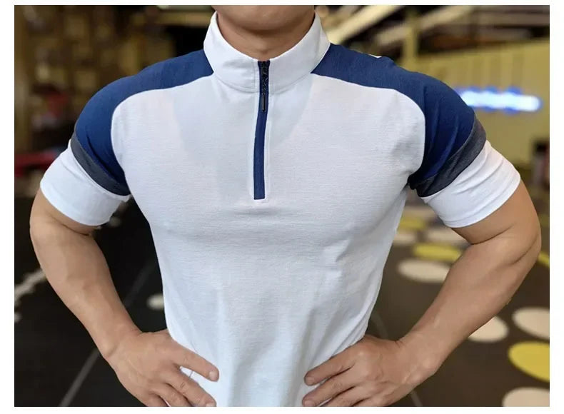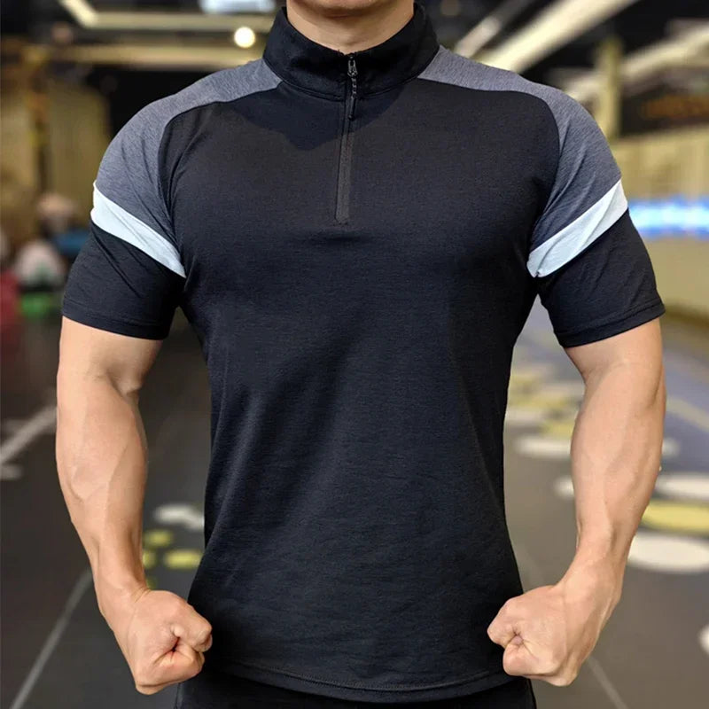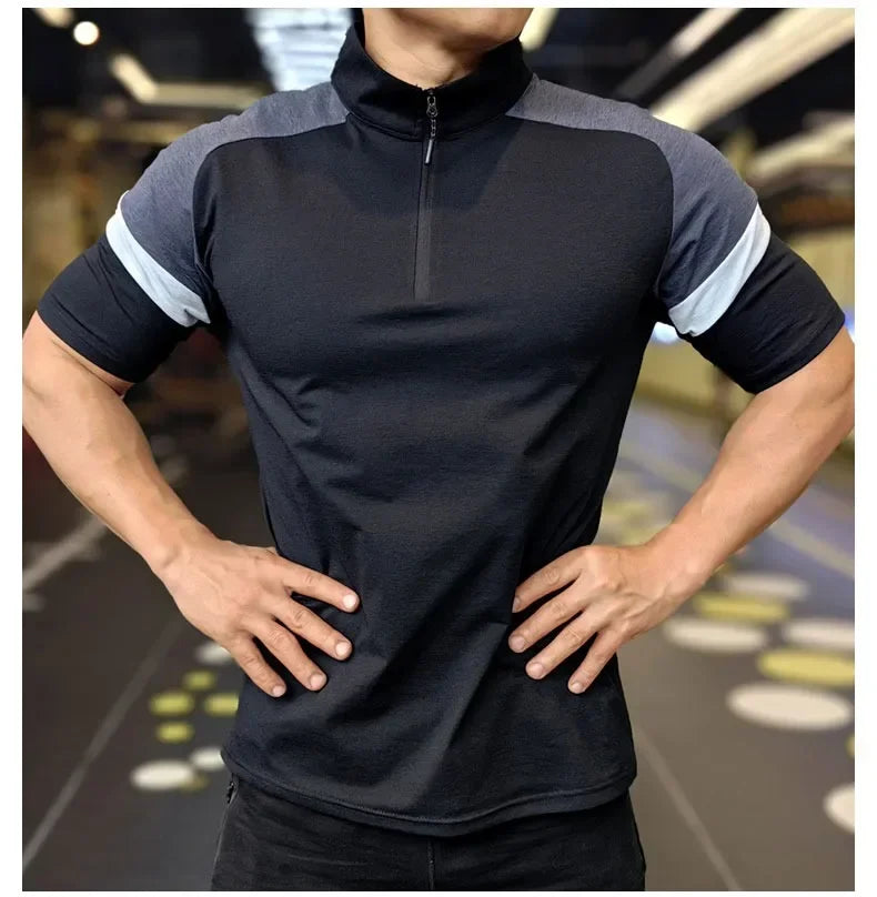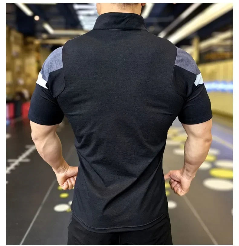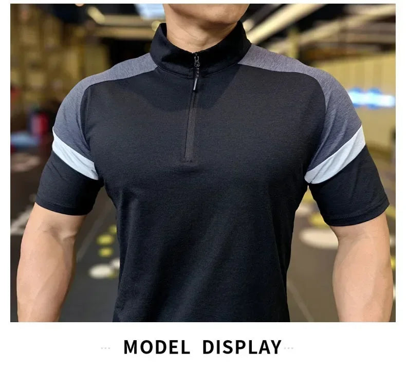 Men's Fitness Running Half Zip Training High Elasticity Muscle T-Shirt
