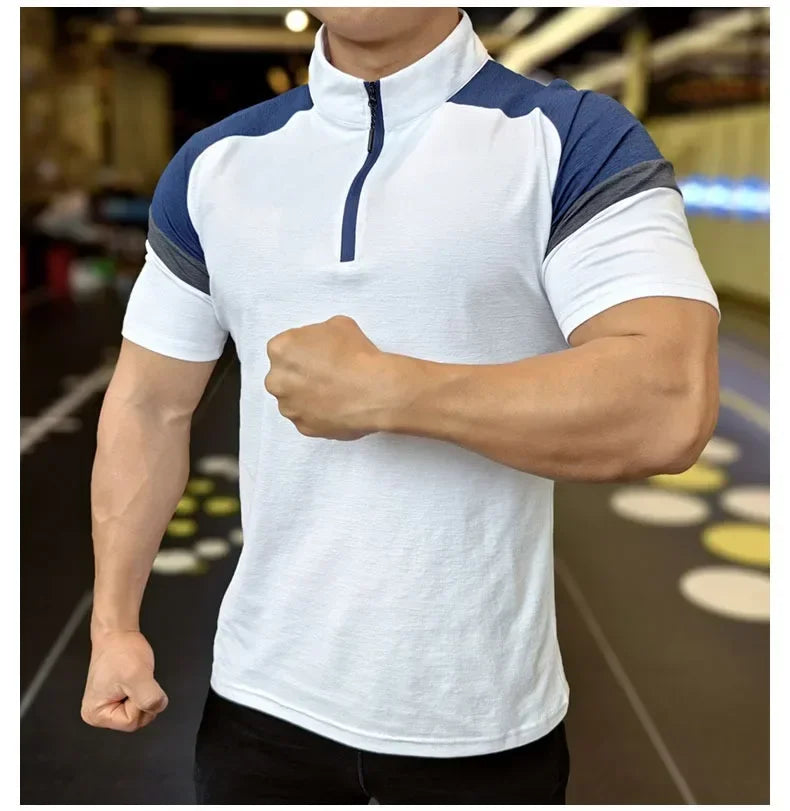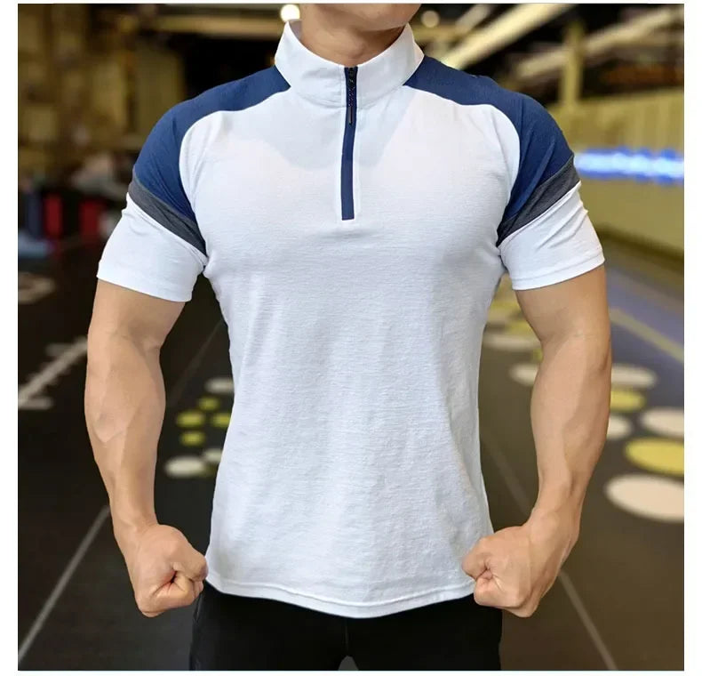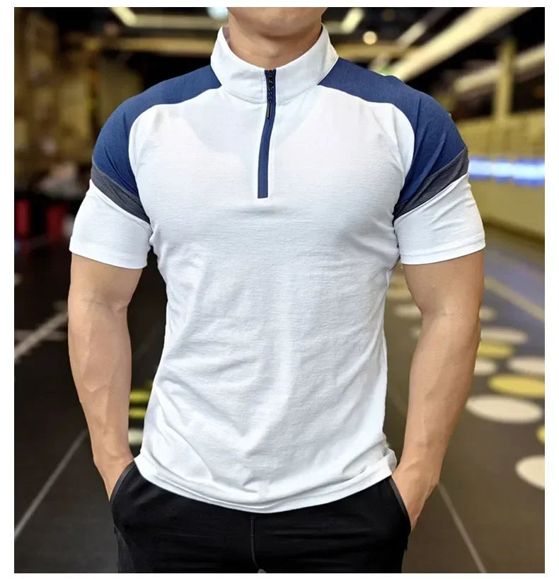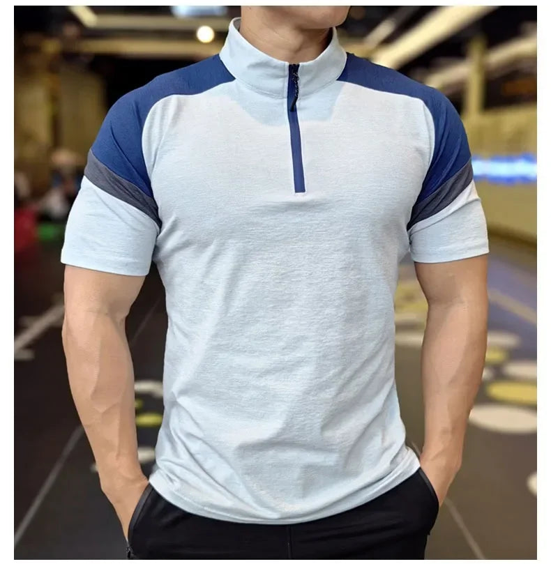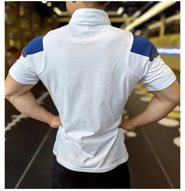 Men's Fitness Running Half Zip Training High Elasticity Muscle T-Shirt