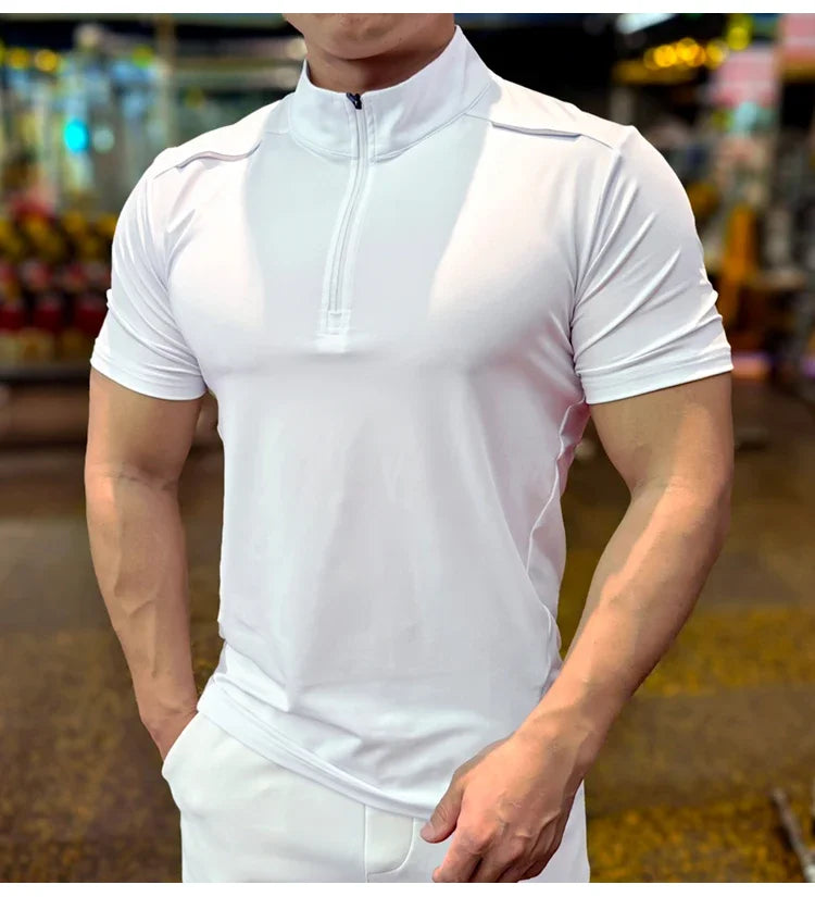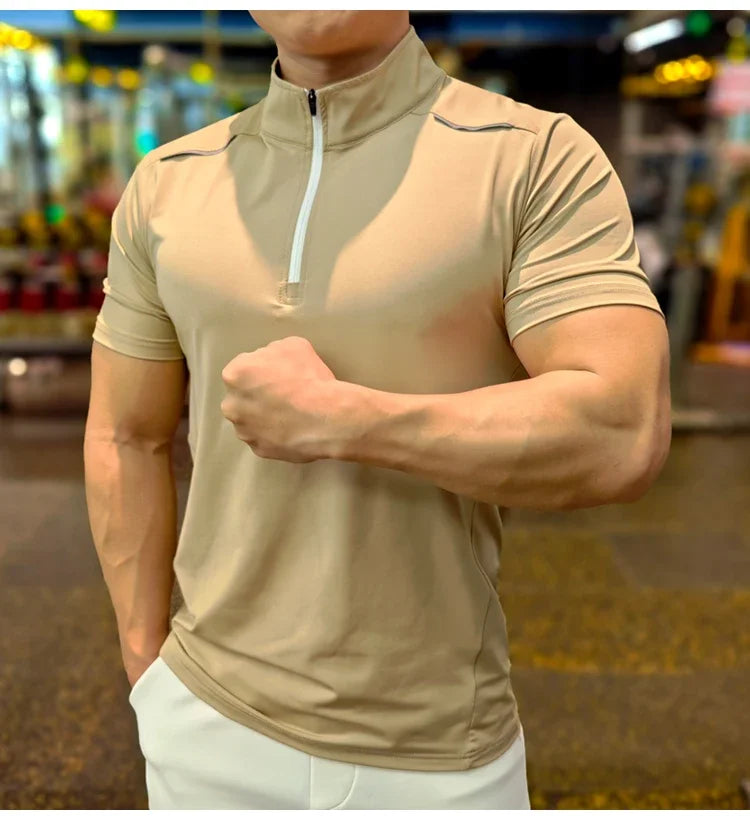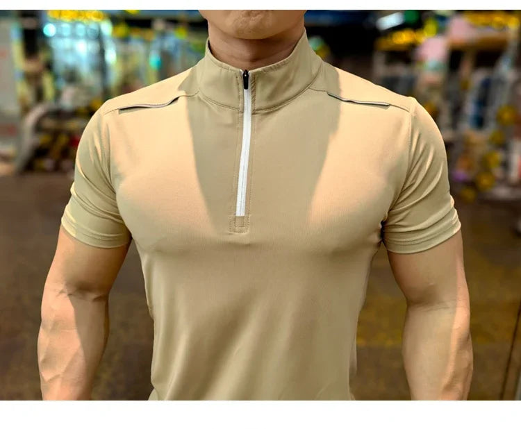 Men's Running Short Sleeve Fitness Muscle Fit Gym Jogging Sports Tennis Elastic Breathable T-Shirt