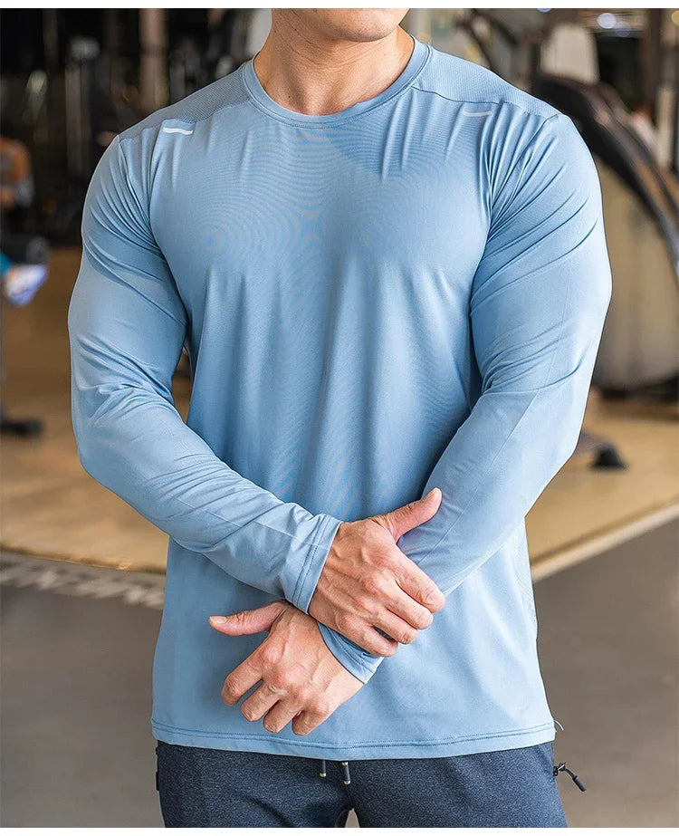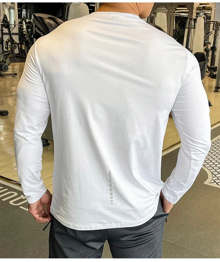 Men's Sports Fitness Long Sleeve Outdoor Badminton Quick Dry Training Casual Thin Running Top Bodybuilding Sportswear T-Shirt