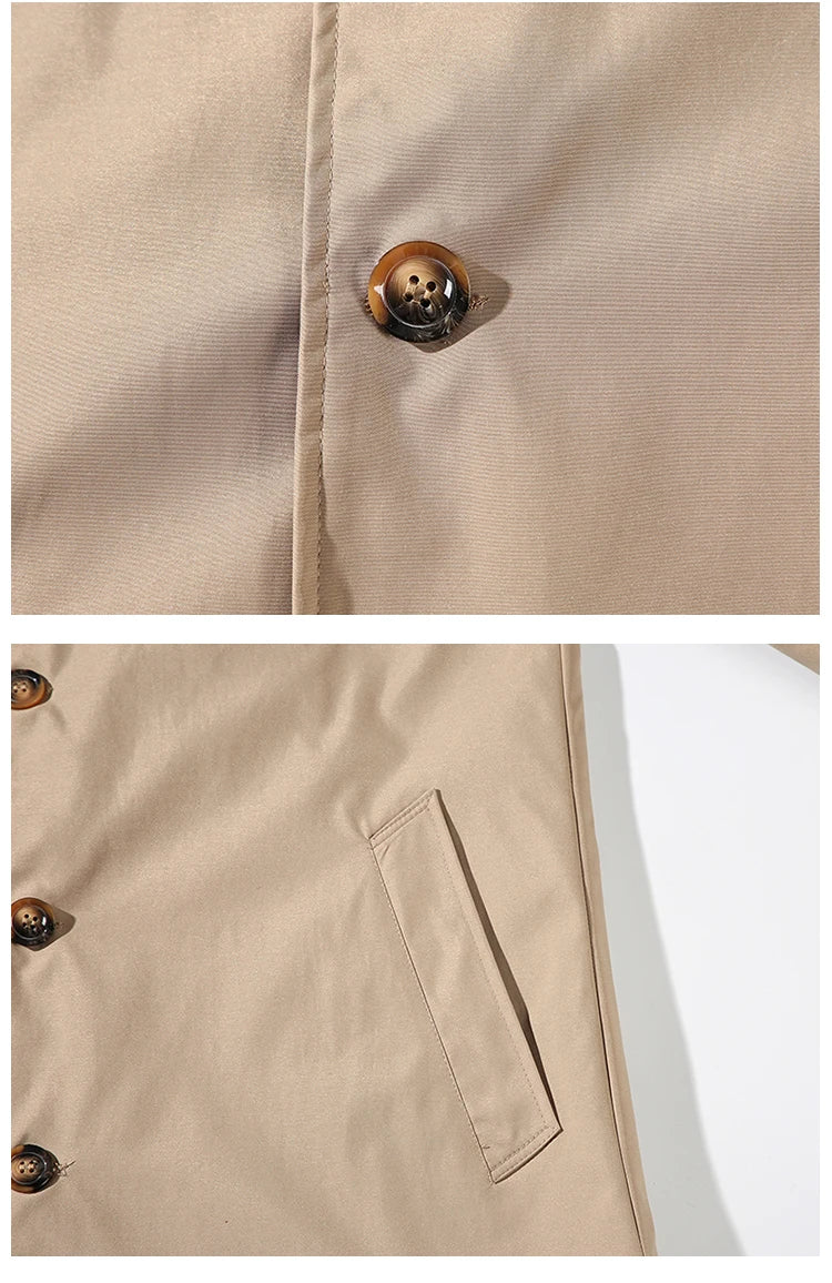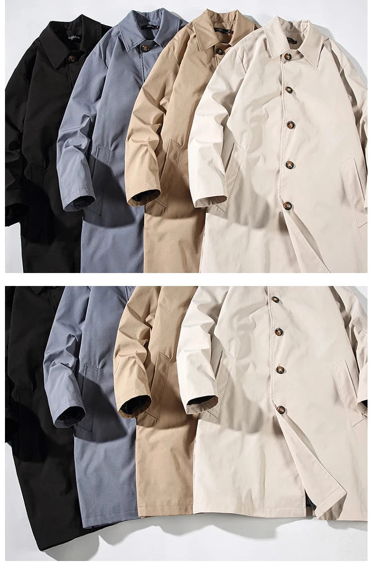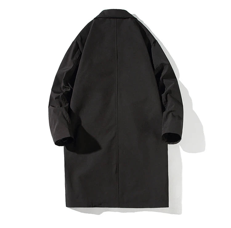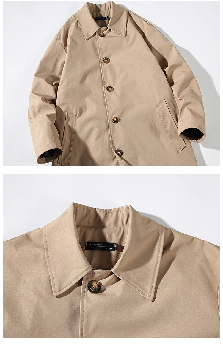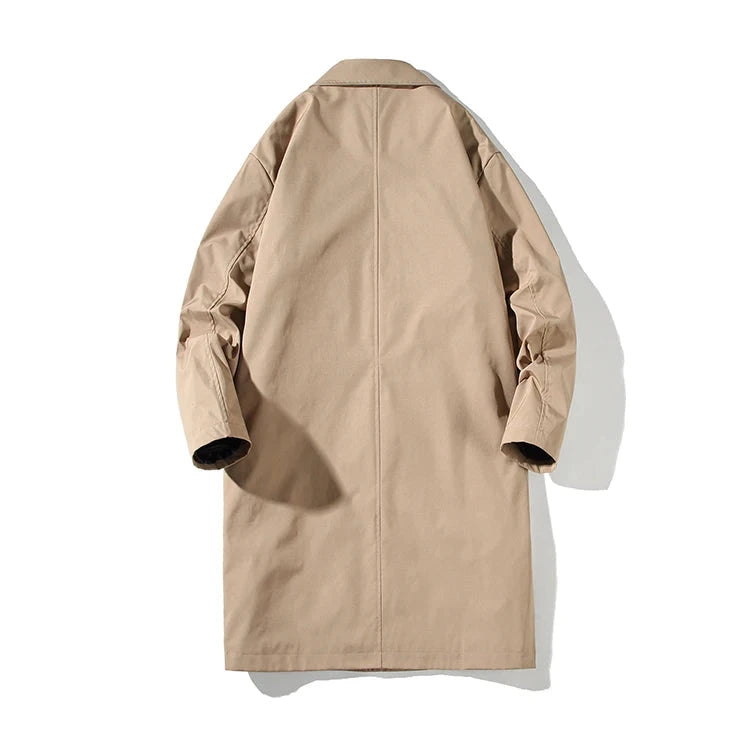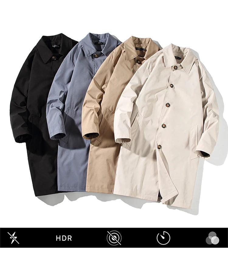 Men's Windbreaker Medium Length Turn Down Collar Trench Coat