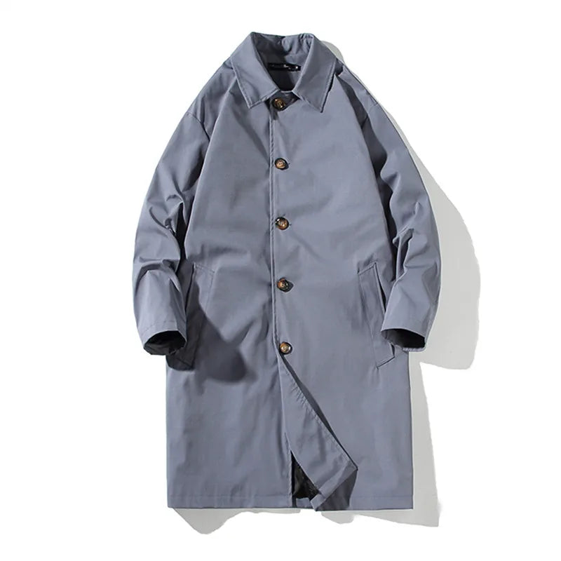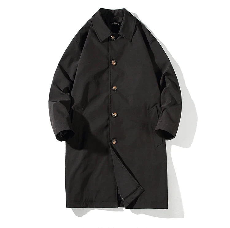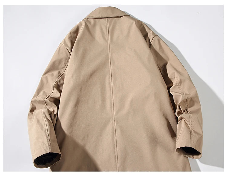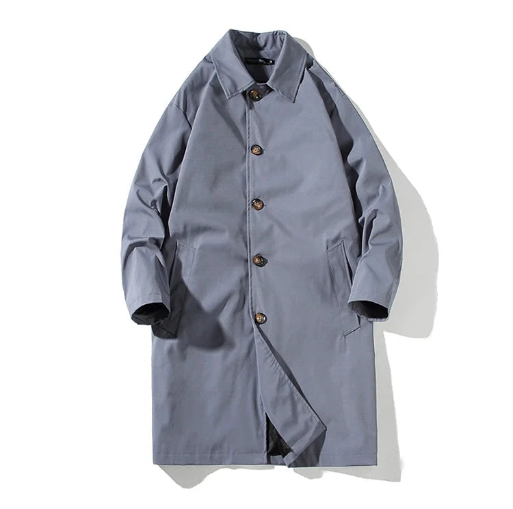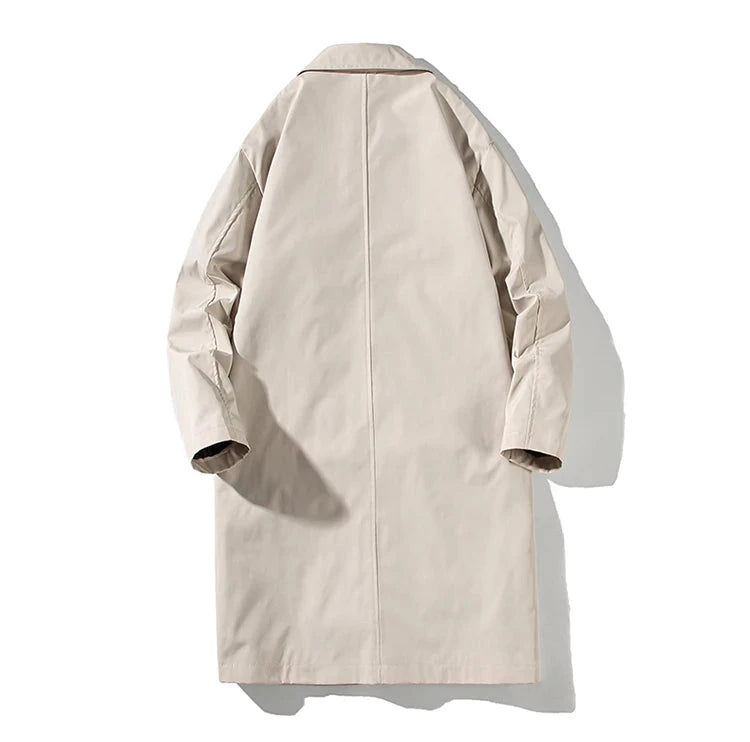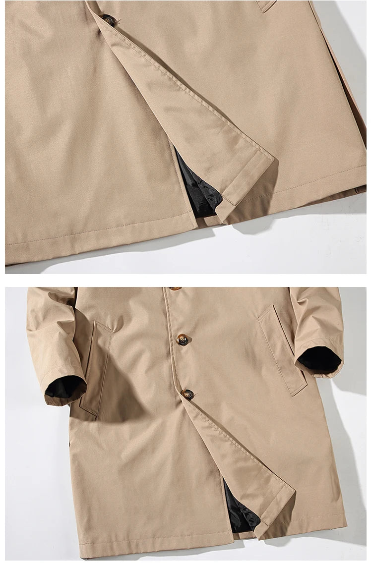 Men's Windbreaker Medium Length Turn Down Collar Trench Coat