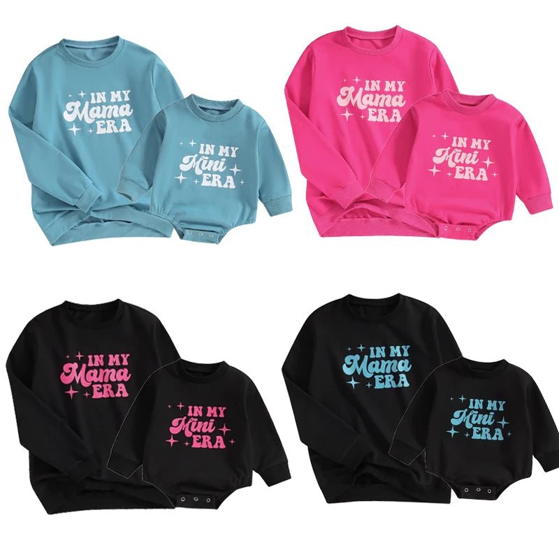 Mommy and Me Matching Sweatshirts/Romper 0-24M Long Sleeve Letter Print Crew Neck Pullovers/Jumpsuits