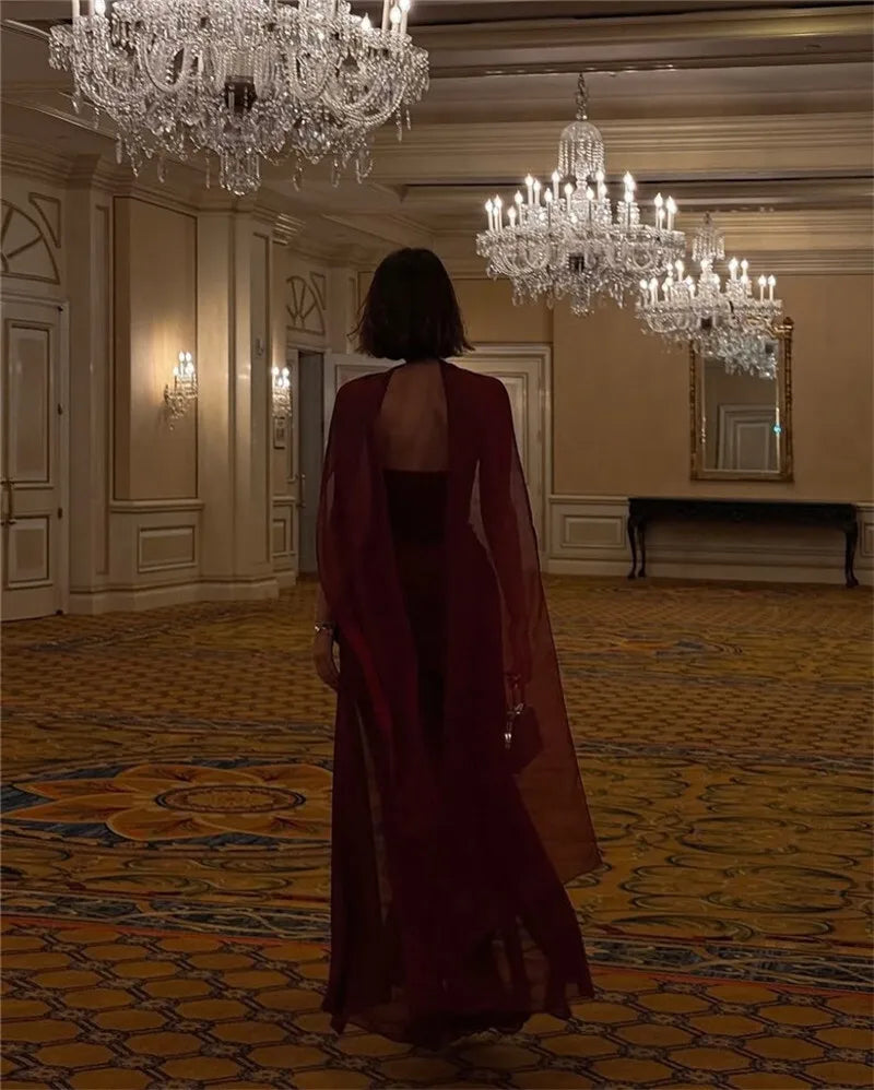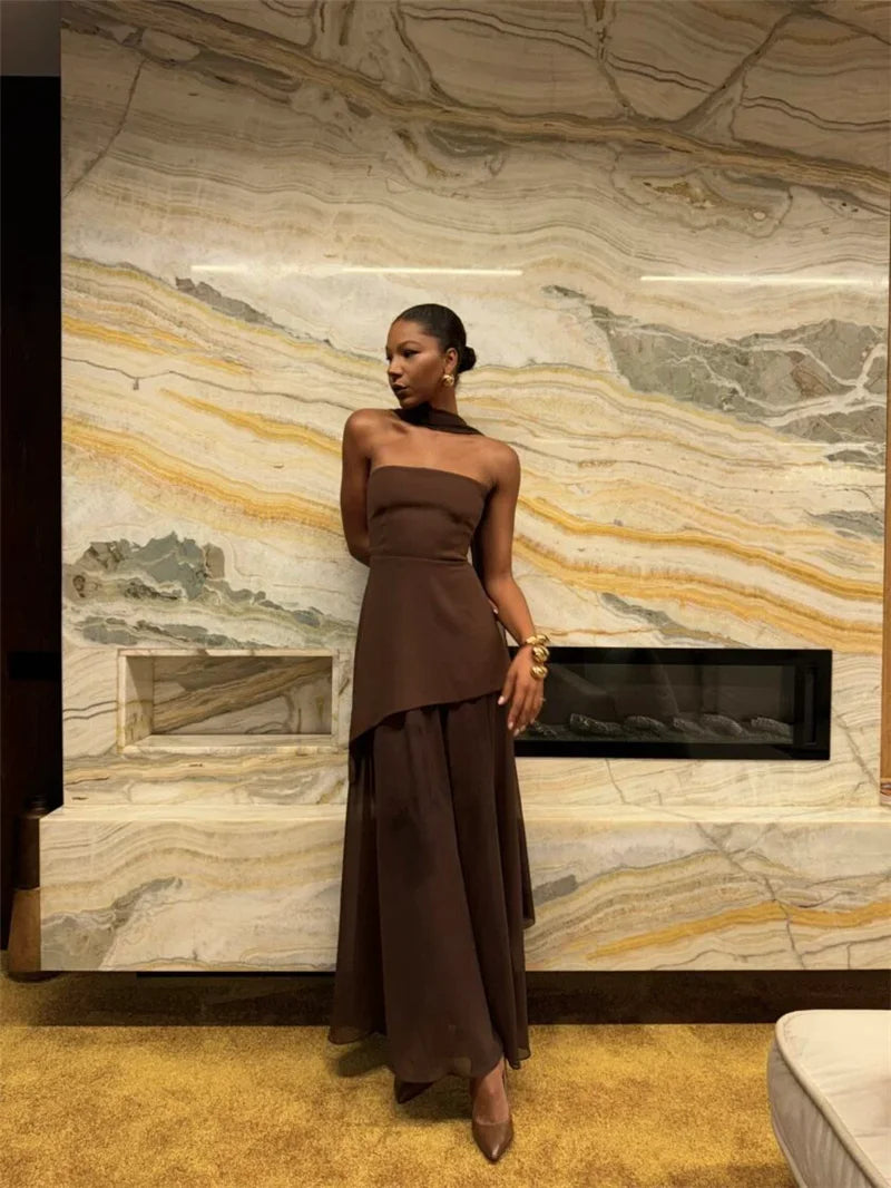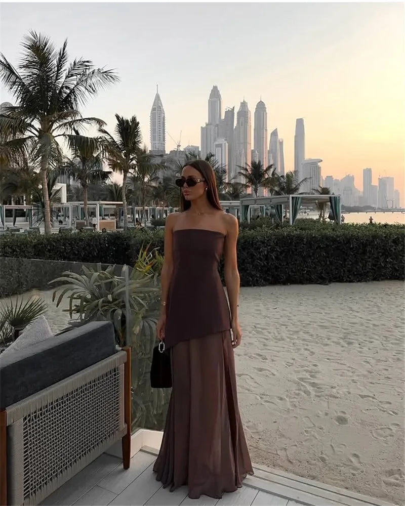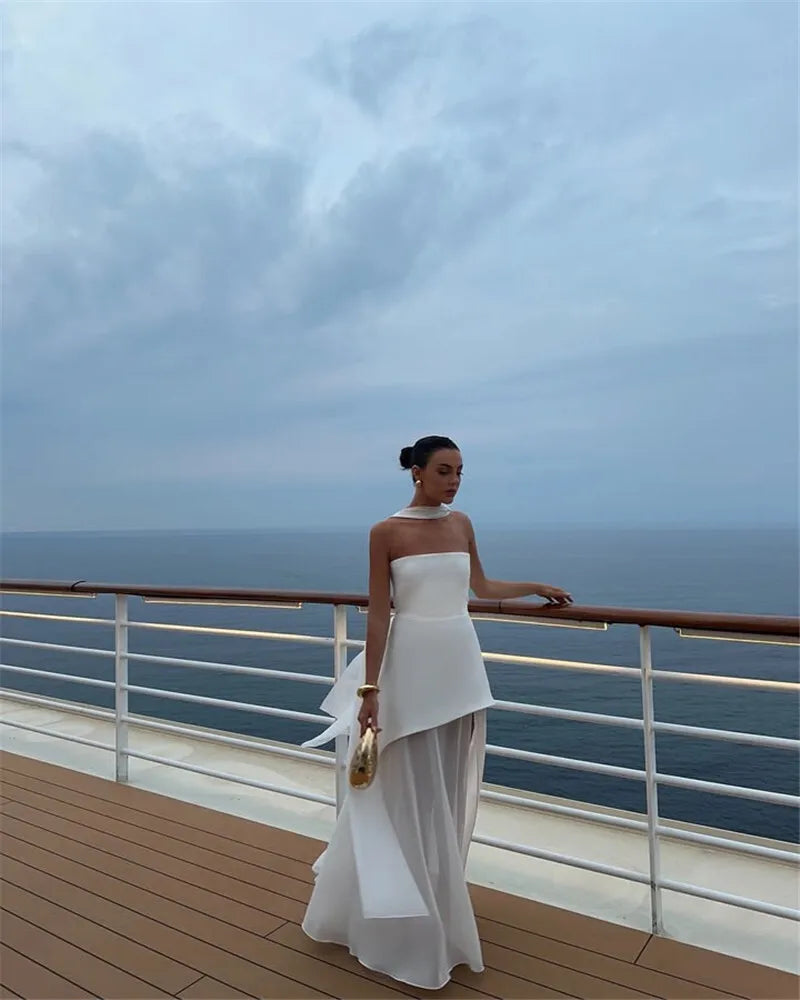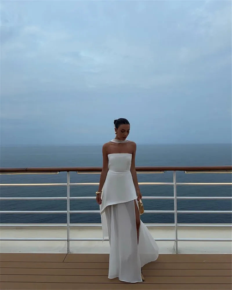 Women's Elegant Strapless Maxi Gown With Scarf Off-shoulder Sleeveless Backless Split Beach Long Dress