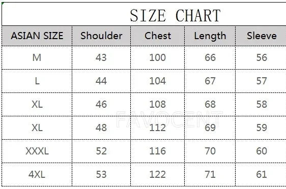 | Size | UK | US | Euro | Chest (cm) | Shoulder (cm) | Length (cm) |