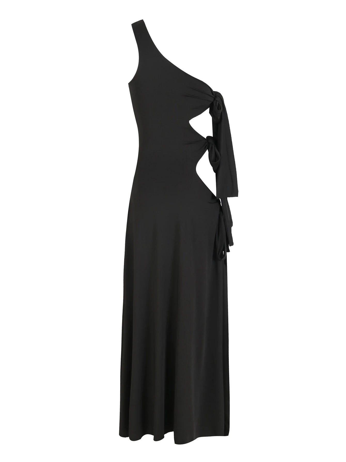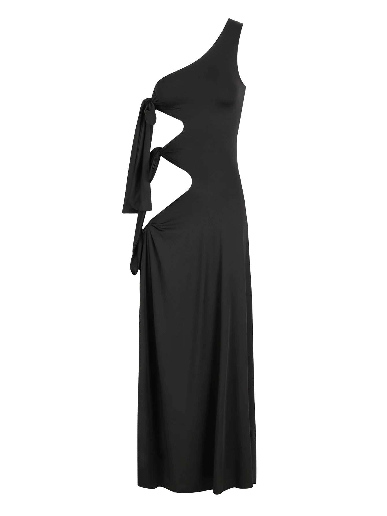 Women's Boho Summer Diagonal Collar Sleeveless Tie Up Hollow Out High Split Long Dress