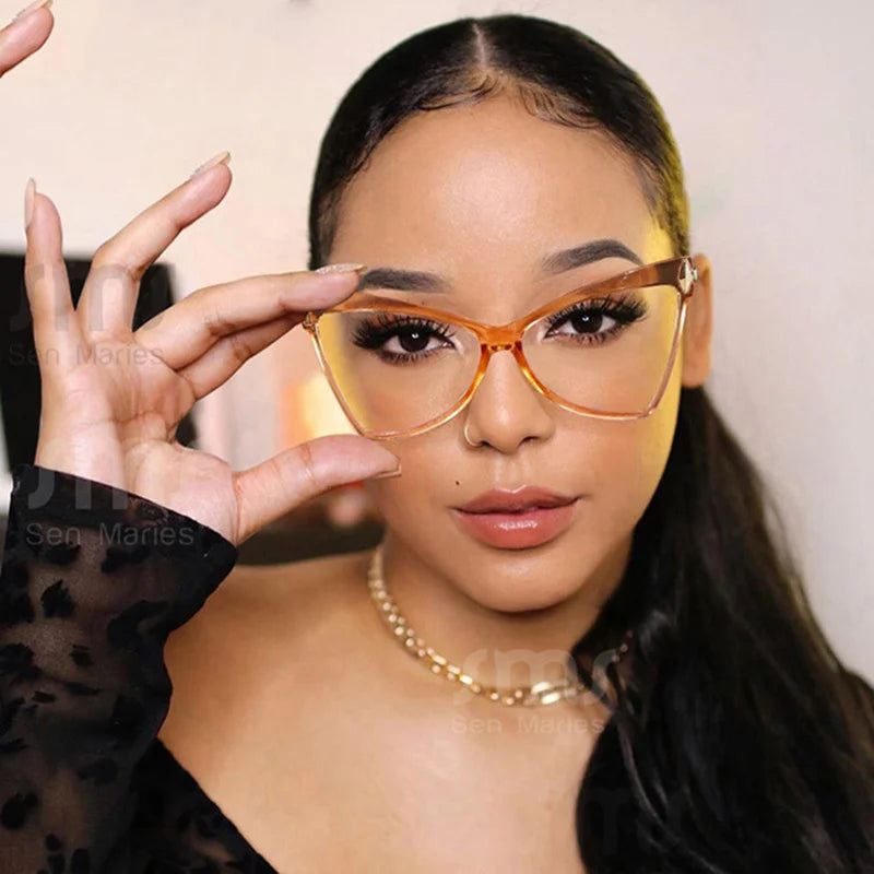 Elevate your style while protecting your eyes with these fashionable cat eye blue light blocking glasses. Featuring a trendy butterfly-inspired large frame design, these elegant eyeglasses combine luxury aesthetics with essential eye protection for the digital age.