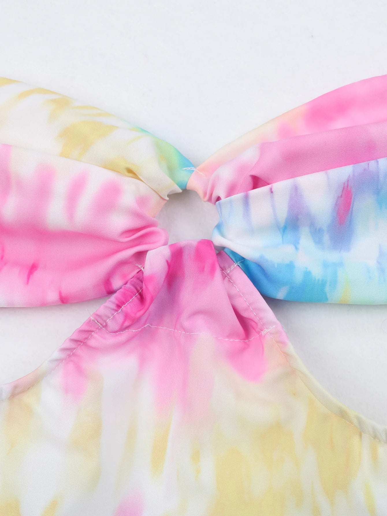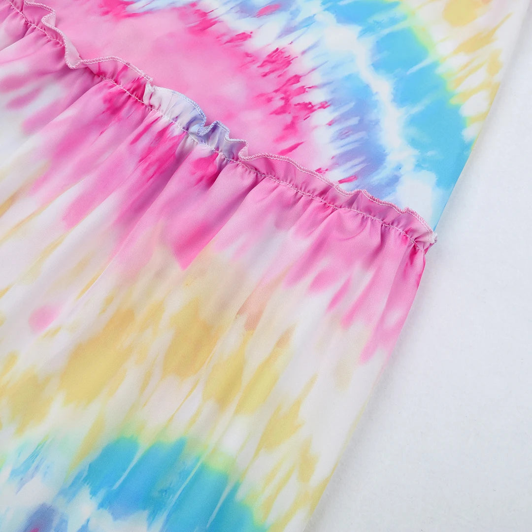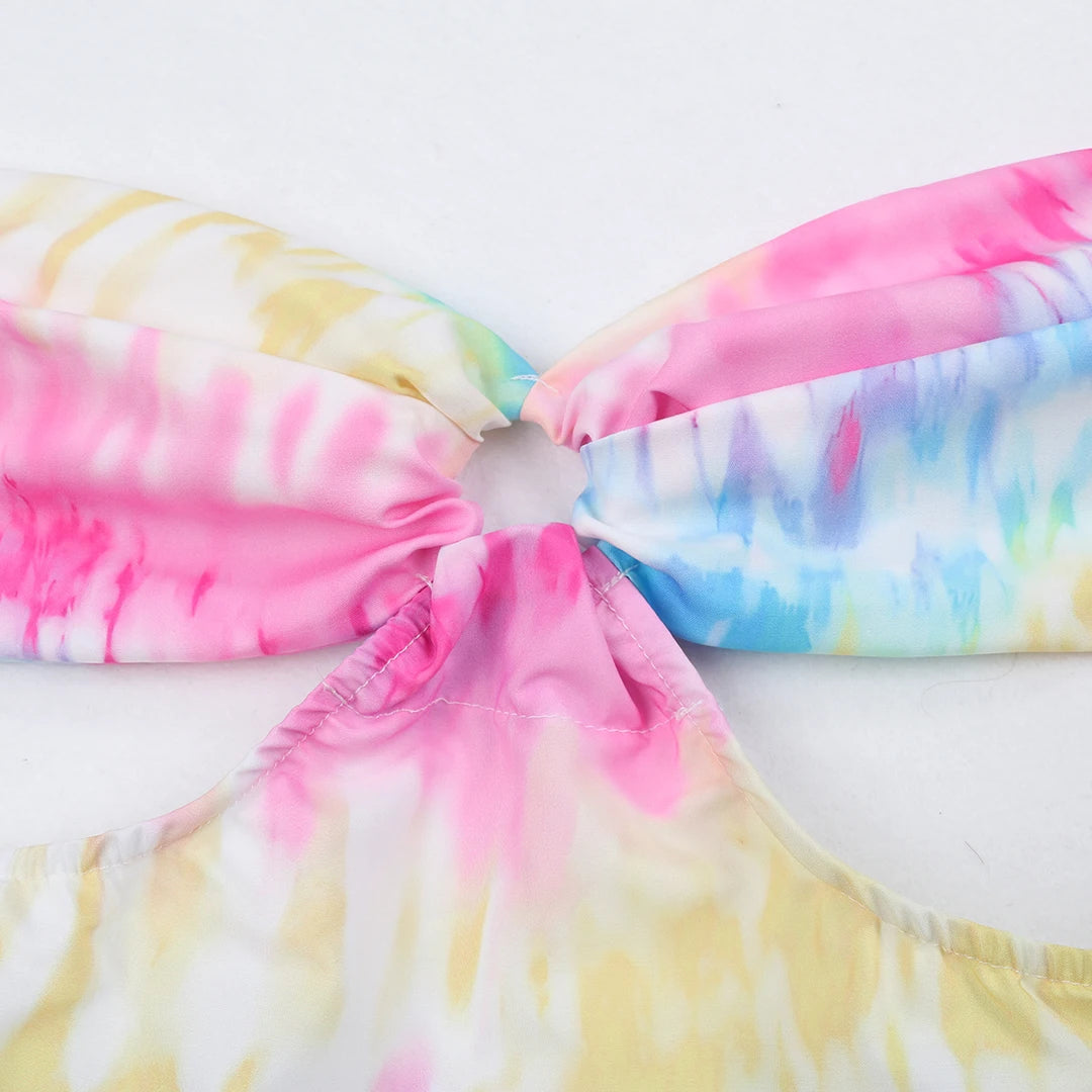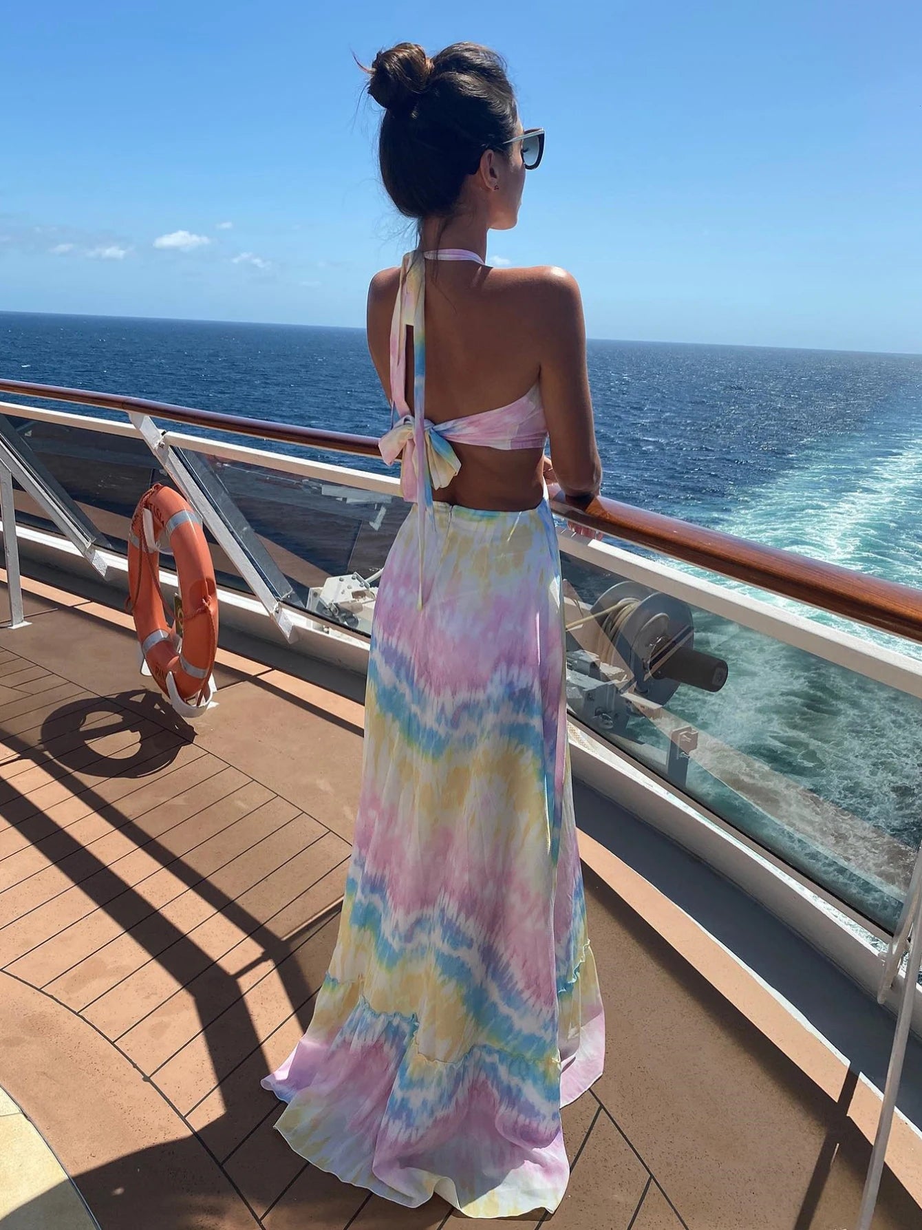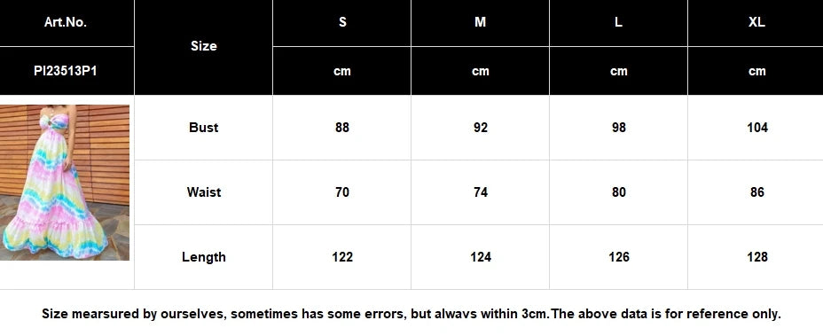 Women's Colourful Print Halter Tie Up Strapless Naked Waist A-line Maxi Summer Dress