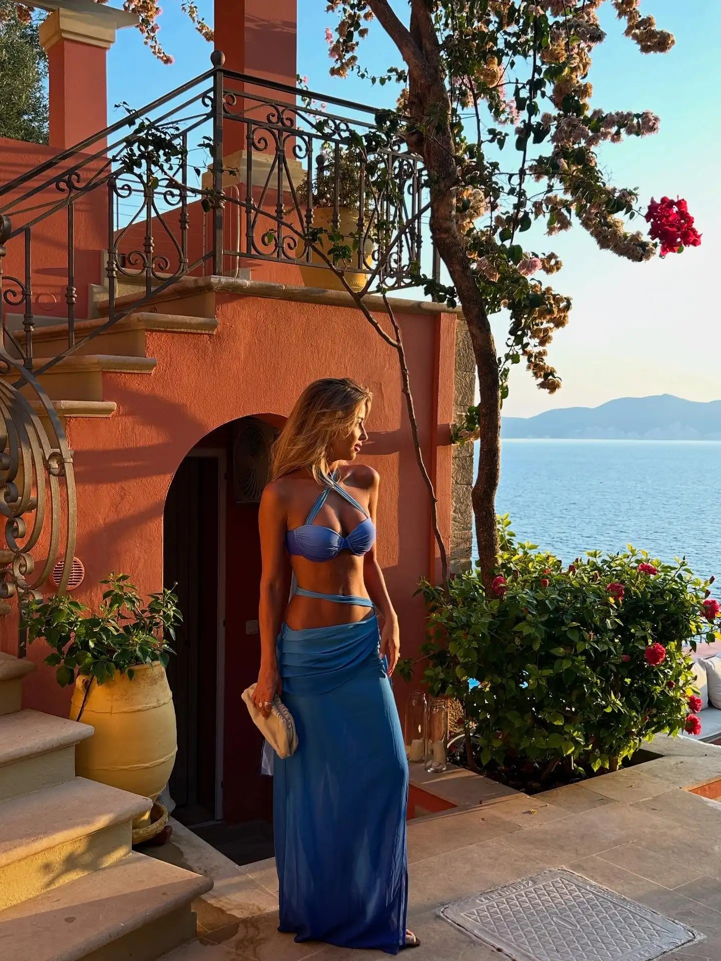 Experience ultimate beach versatility with this complete printed swimwear collection. The mesh halter provides stylish support whilst the coordinating tube top and skirt allow you to transition seamlessly from swimming to beachside strolling. Perfect for creating multiple chic looks throughout your summer holiday.