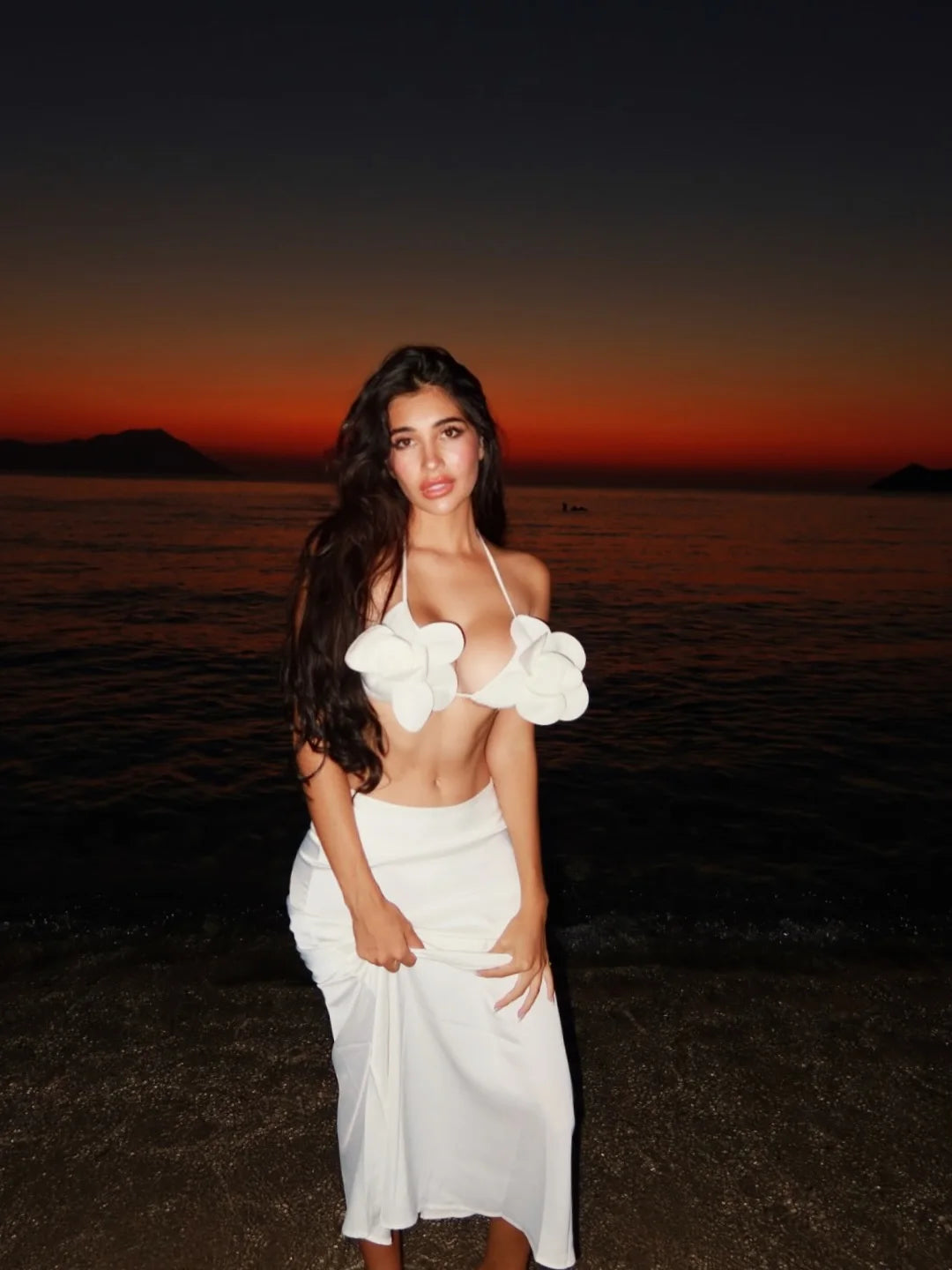 Whether you're lounging by the pool, walking along the beach, or enjoying a beach bar, this versatile set ensures you look effortlessly chic. The mesh skirt adds an elegant touch that transitions beautifully from swimwear to casual beachwear.