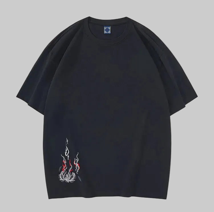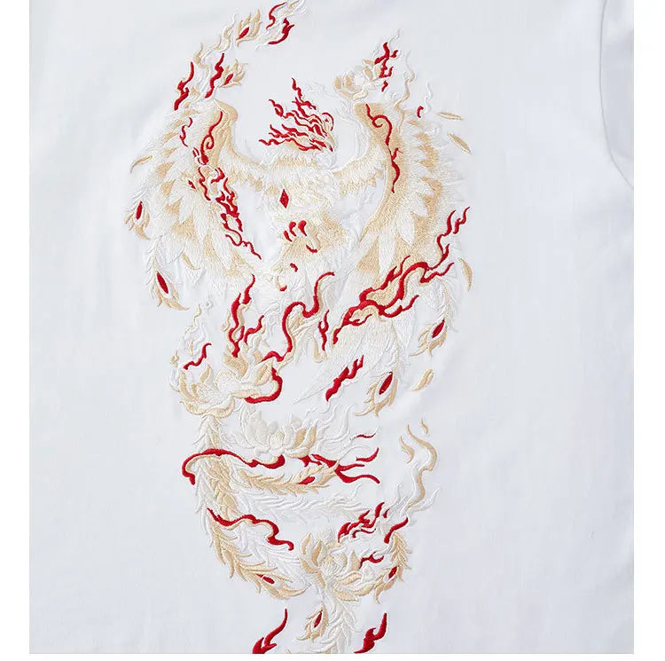 Make a powerful statement with this phoenix embroidered t-shirt. Featuring intricate, detailed phoenix embroidery and a comfortable loose fit, this premium combed cotton tee combines artistic craftsmanship with everyday wearability.