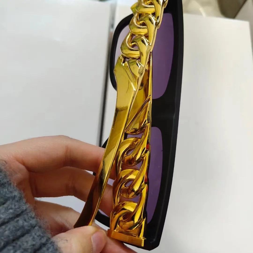 Whether you're hitting the streets, attending a festival, or simply expressing your unique style, these hip hop punk sunglasses with gold chain detailing are the perfect accessory to showcase your bold personality and fashion sense.