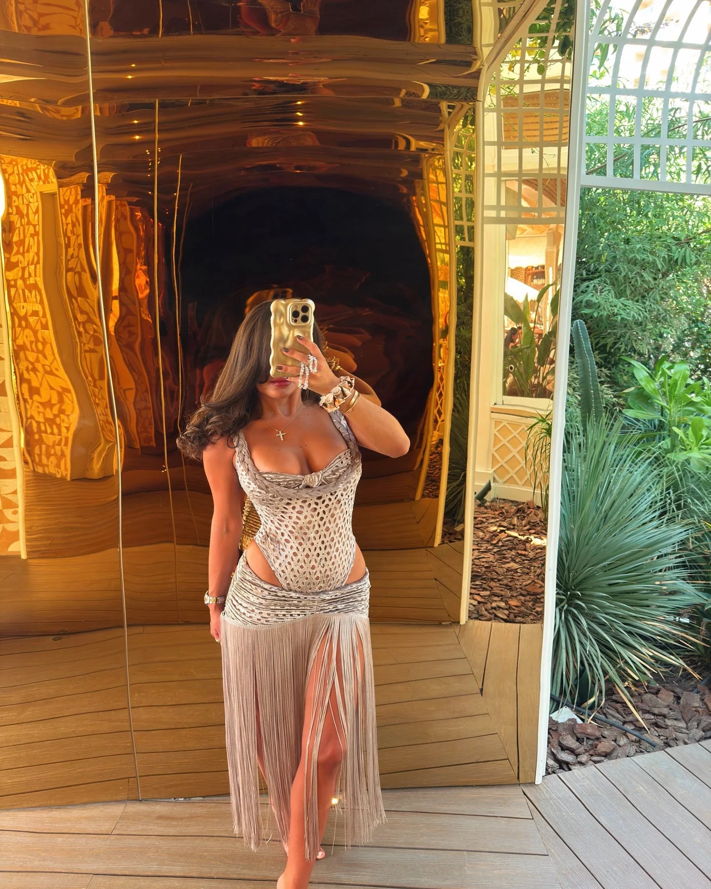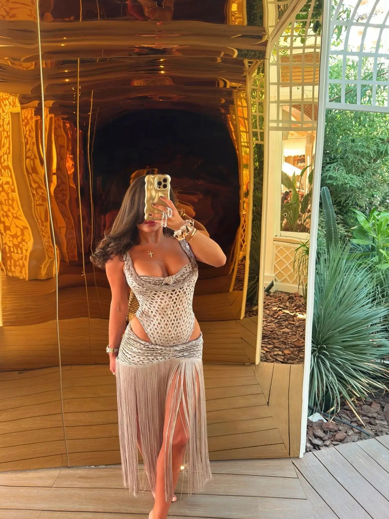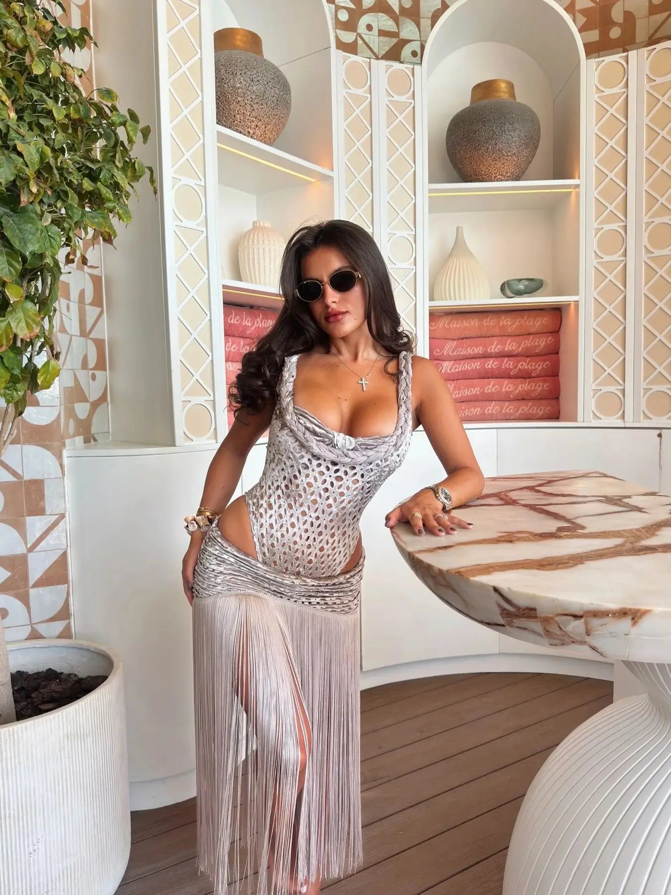 Embrace effortless elegance with this stunning two-piece set featuring a braided knit sleeveless top and a flowing maxi skirt with delicate lace tassel details. Perfect for summer occasions, beach holidays, or any event where you want to look effortlessly chic.
