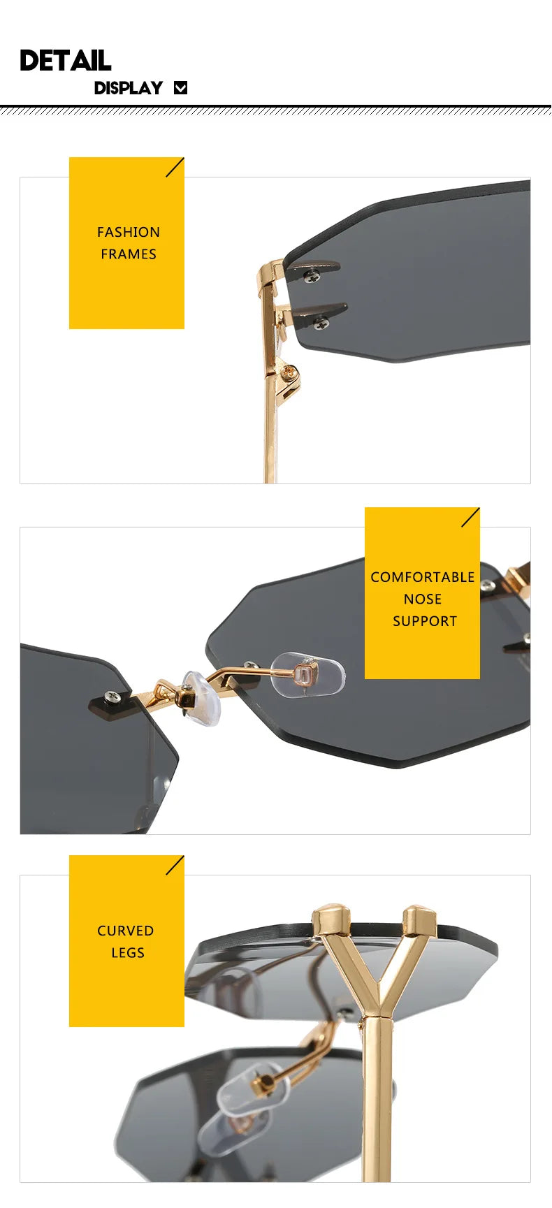 Step into the future with these sleek frameless sunglasses designed for the modern woman. Perfect for outdoor activities, sports, and everyday fashion, these cutting-edge eyewear pieces offer superior UV protection with a contemporary aesthetic.